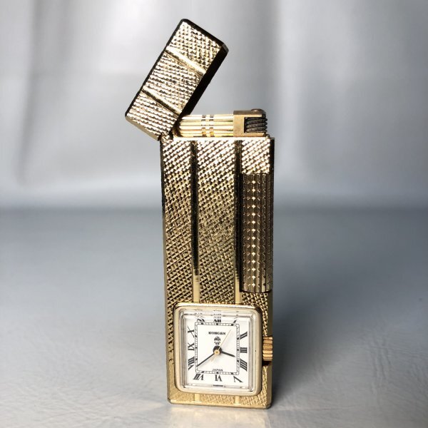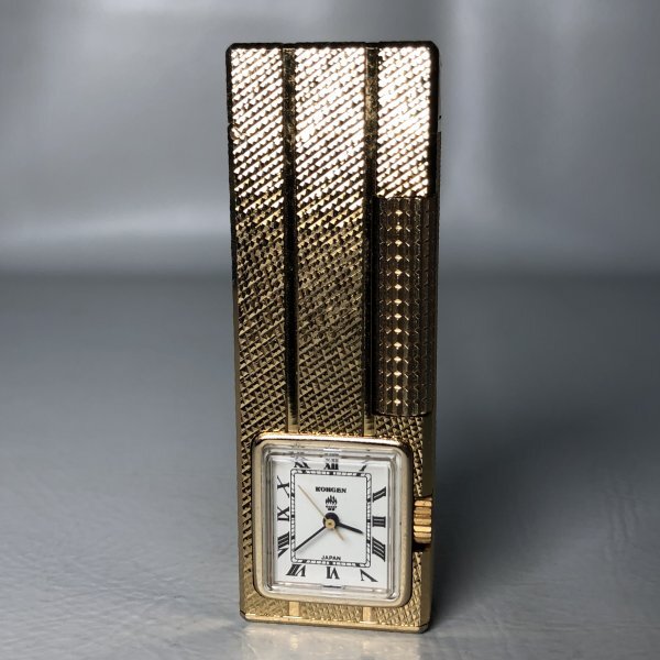 ジャンク 【 KOHGEN TWINKLE-5 】 時計付き ガスライター ゴールドカラー火花確認済み 日本製 Lighter 昭和レトロ 喫煙具 ■ 本605 東