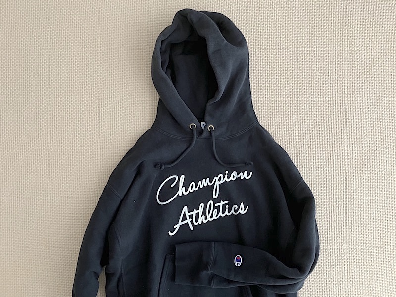 胸にはChampion Athletics の刺繍ステッチプリントが施されています