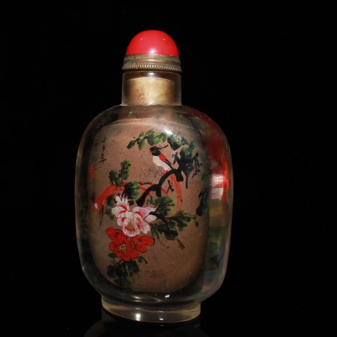 説明 | 早期収蔵瑠璃内画花鳥鼻煙壺置物細工品相図 |