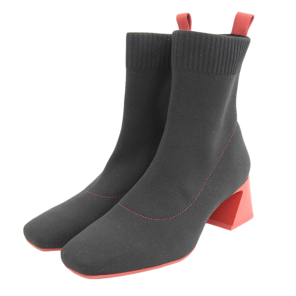 美品 VIVAIA ビバイア スクエアトゥ ショートブーツ レディース ブラック 37.5