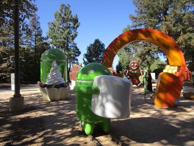 2)コメント1 :サンフランシスコ郊外シリコンバレーにあるグーグルの本社。アンドロイドとドーナッツが出迎えてくれました。