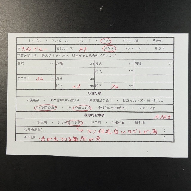 ・シミやヨゴレ有(スソ付近白いヨゴレ有)