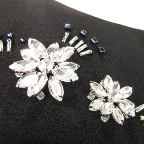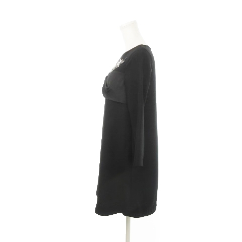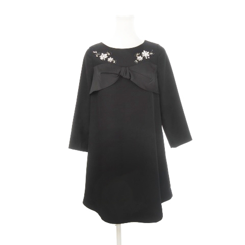 チェスティ Chesty ミニワンピース 長袖 ビジュー フラワー ラインストーン リボン 0 S 黒 ブラック /AH22 レディース