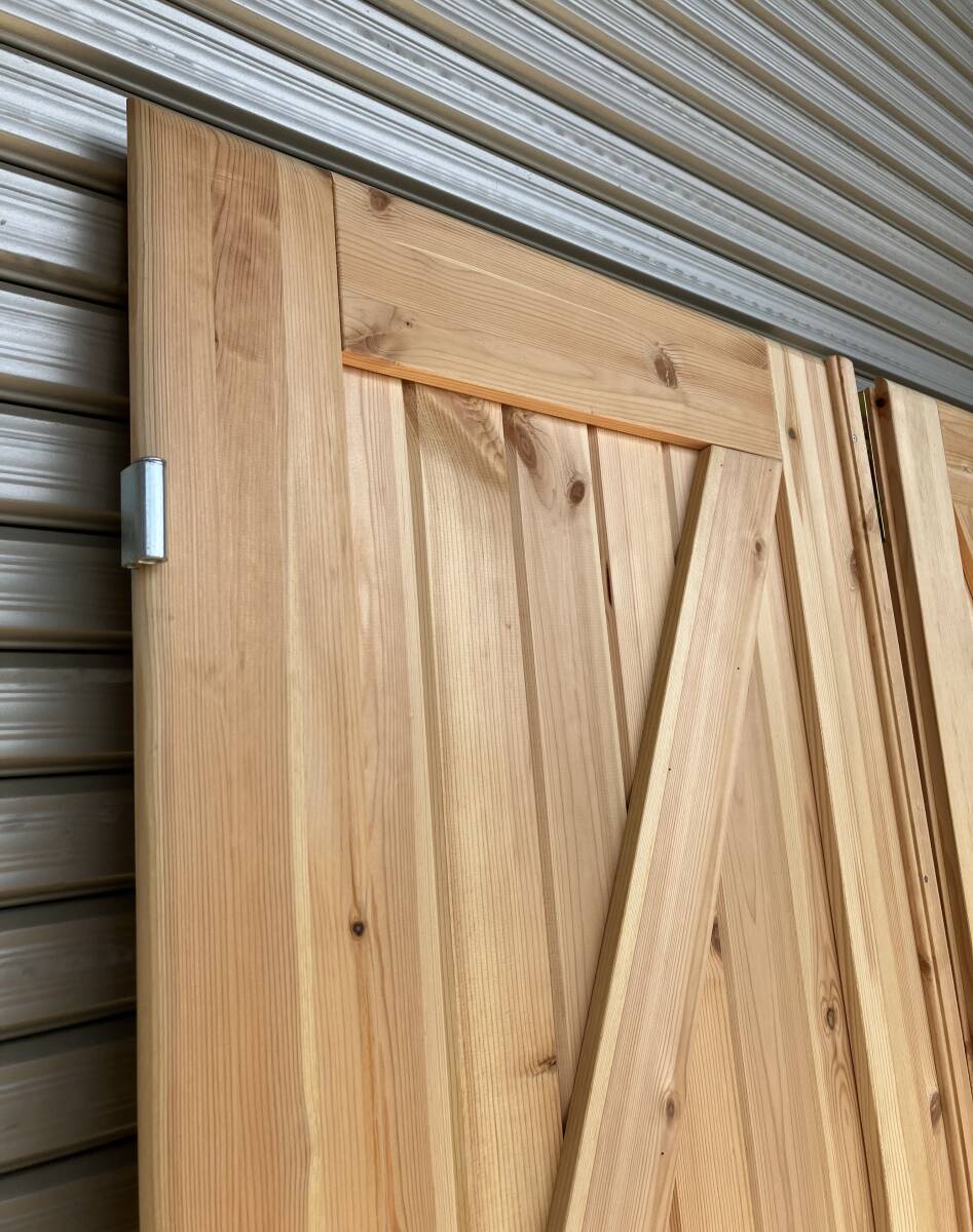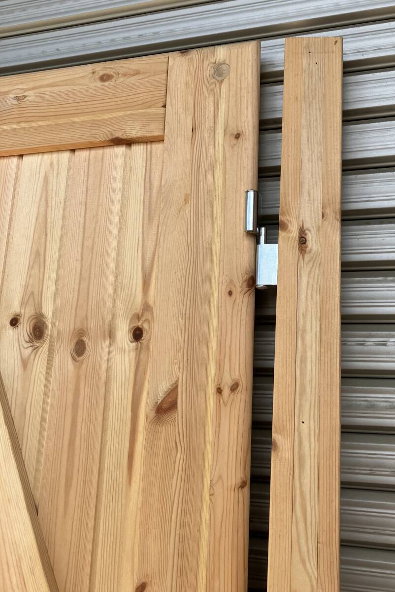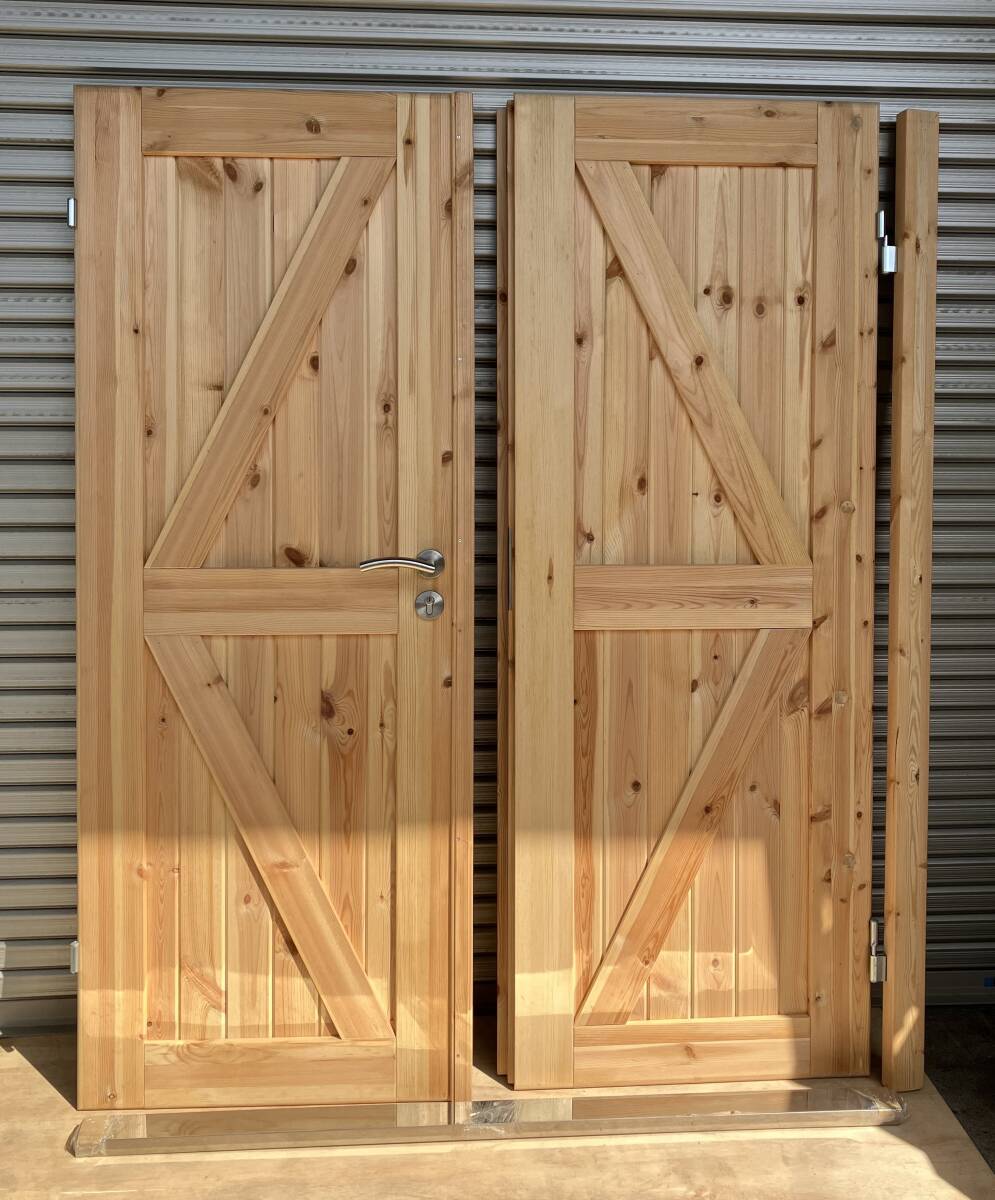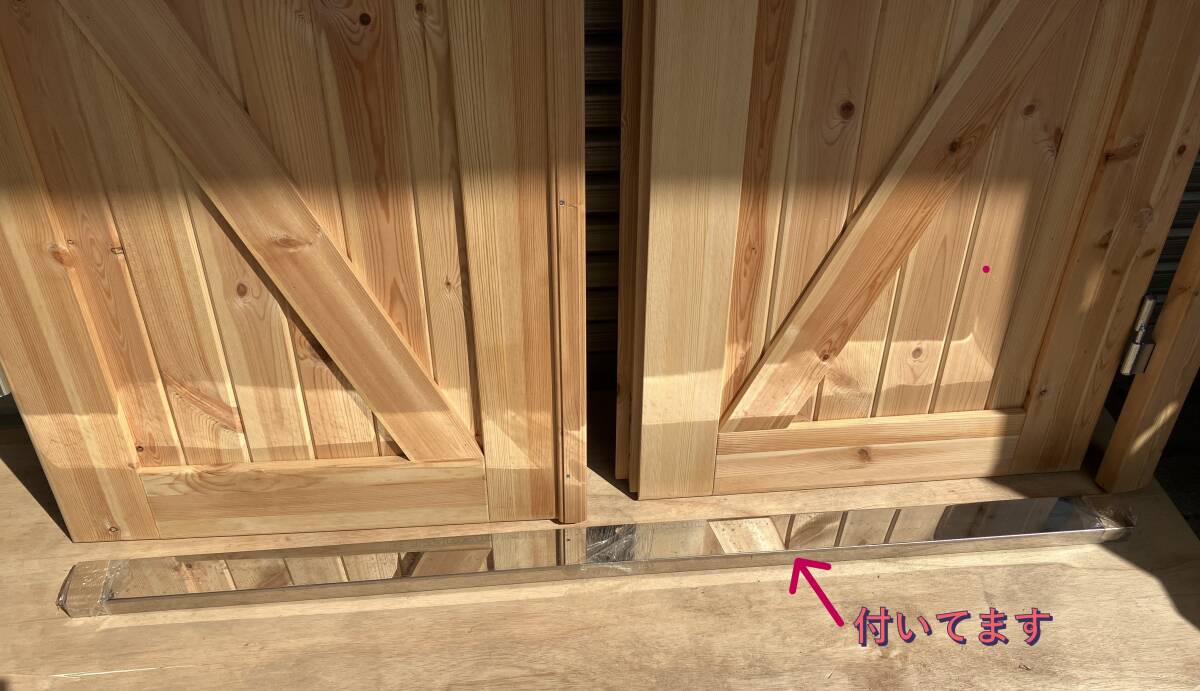 玄関用の両開き木製ドアです。外から見て左側に取手があります。画像でご確認ください。