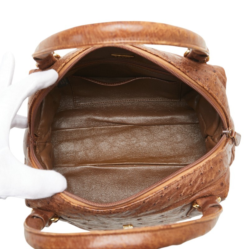 バリー ミニボストンバッグ ハンドバッグ ブラウン オーストリッチ レディース BALLY 【中古】