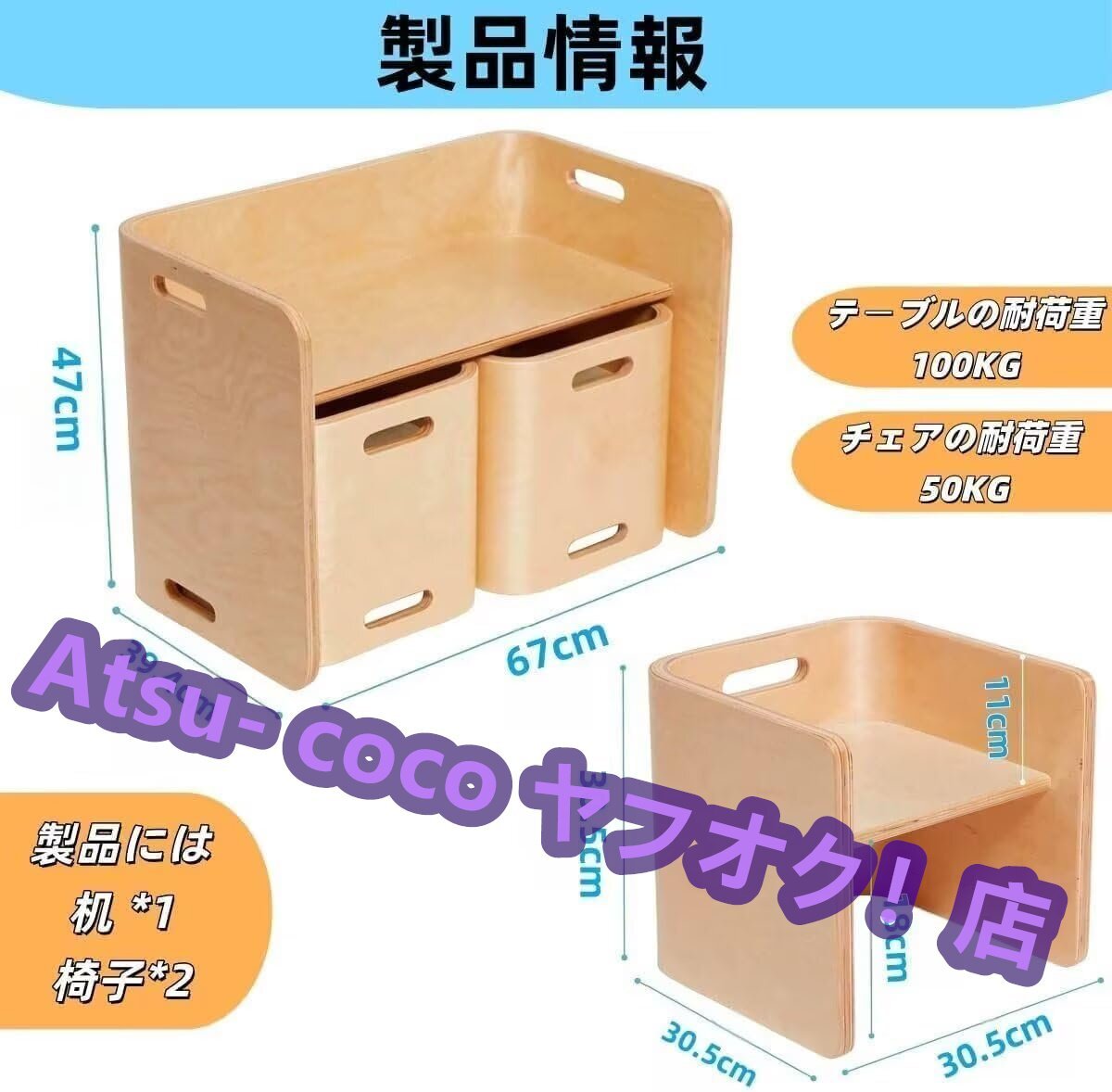 子ども用テーブル 椅子セット 木製 キッズデスク デスクチェア 子供用 スタディーセット 釘なしクラフト 入園祝い 3点セット (67x47x38cm)