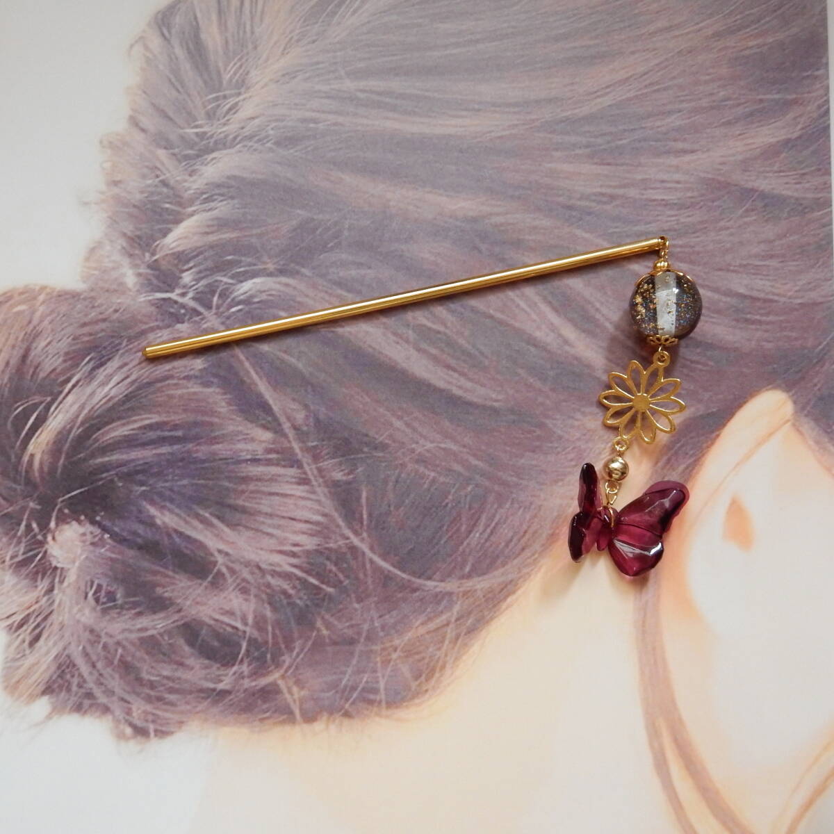 ハンドメイドの簪となります。