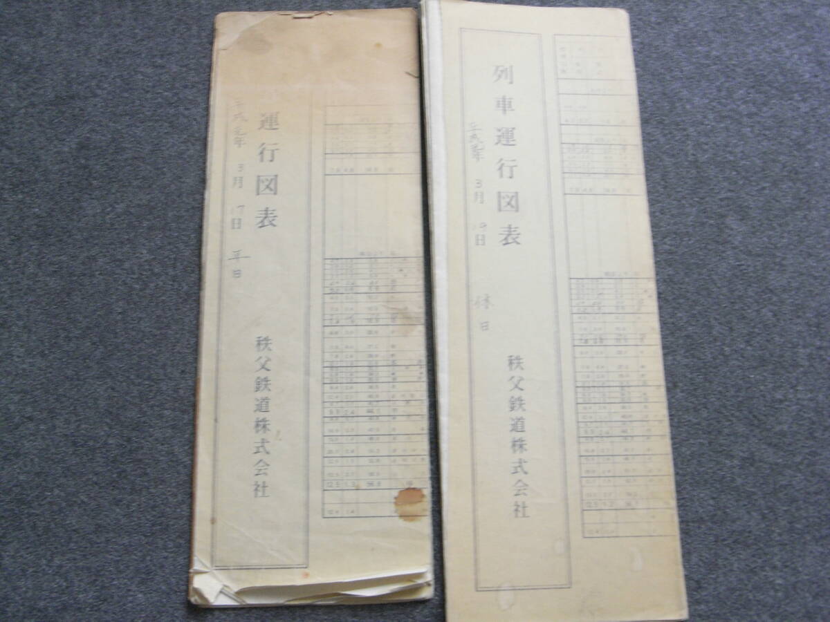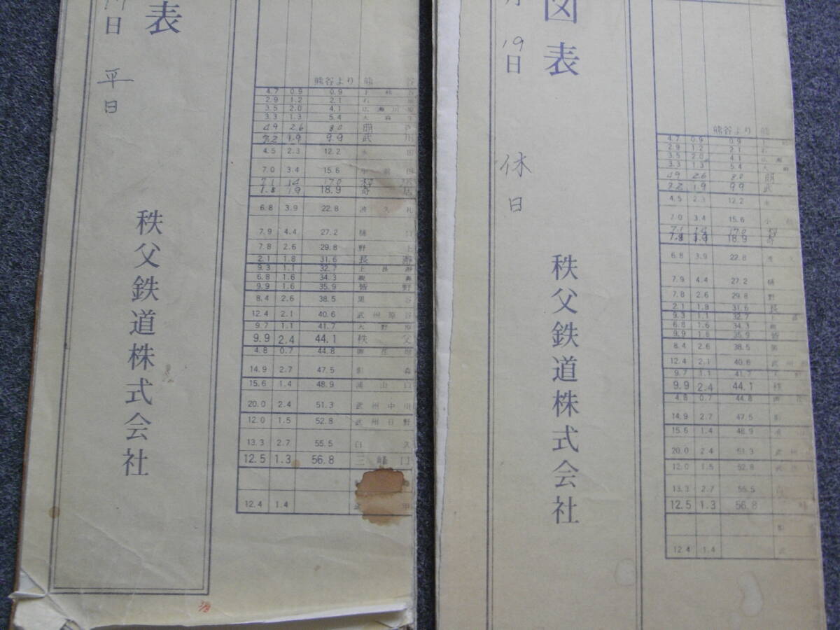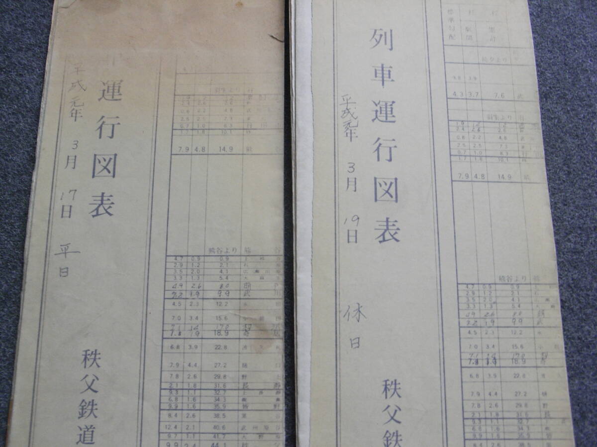 2点/秩父鉄道 列車運行図表 平成元年3月17日平日/平成元年3月19日休日 2点
