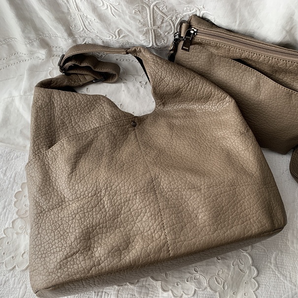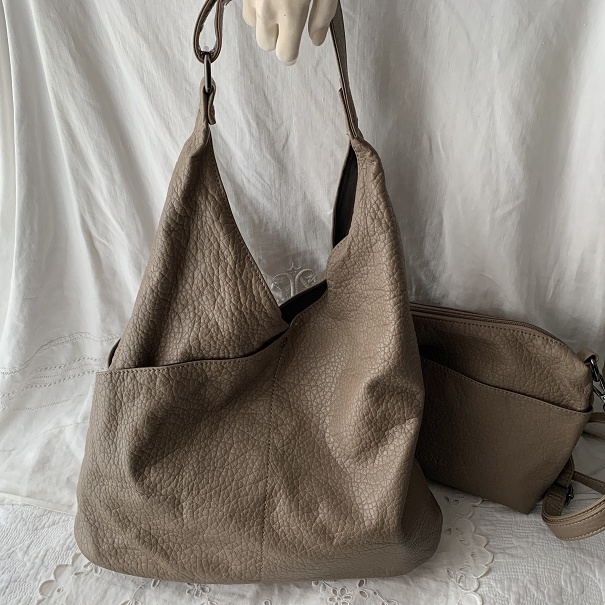 新品同様 フィラノ Firano ウォッシュド加工 トライアングルトート&ショルダーバッグ 2点セット チャコールブラウン 軽量 旅行