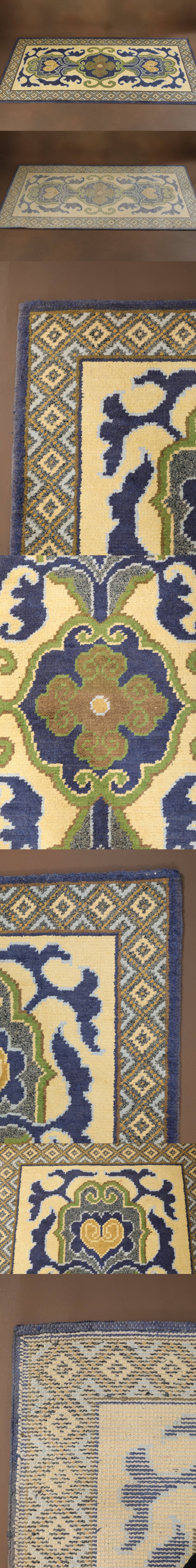 寸法188×95㎝。綿製総手織。模様は段通を代表する「蟹牡丹」。