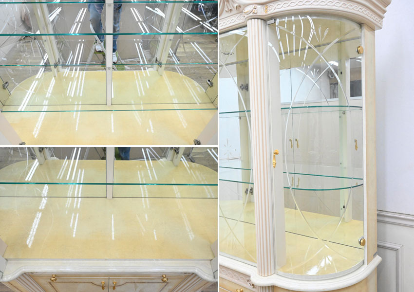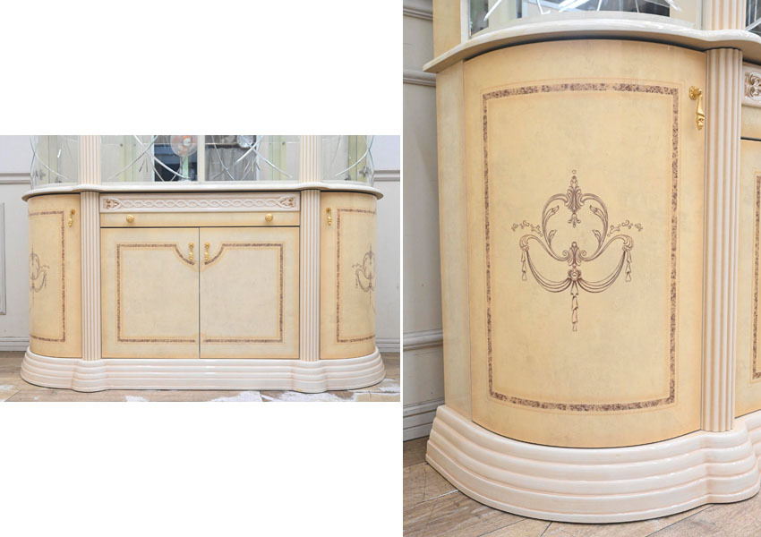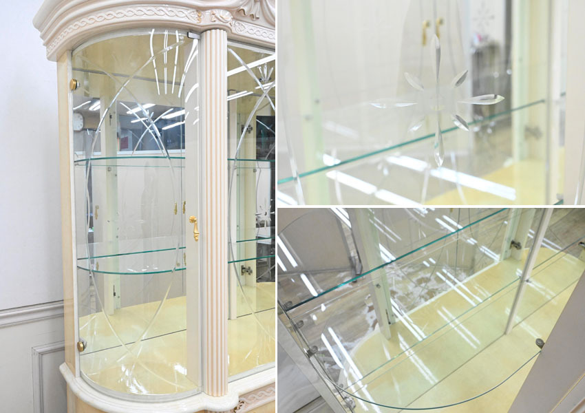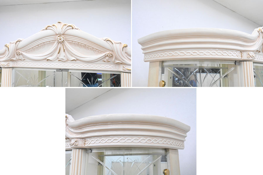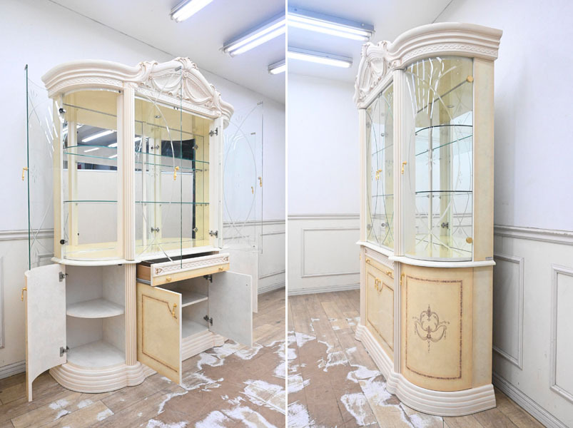 DD30 美品 イタリア製 ロココ調 クラシック 飾り棚 コレクションケース キャビネット キュリオケース ホワイト家具 リビングボード