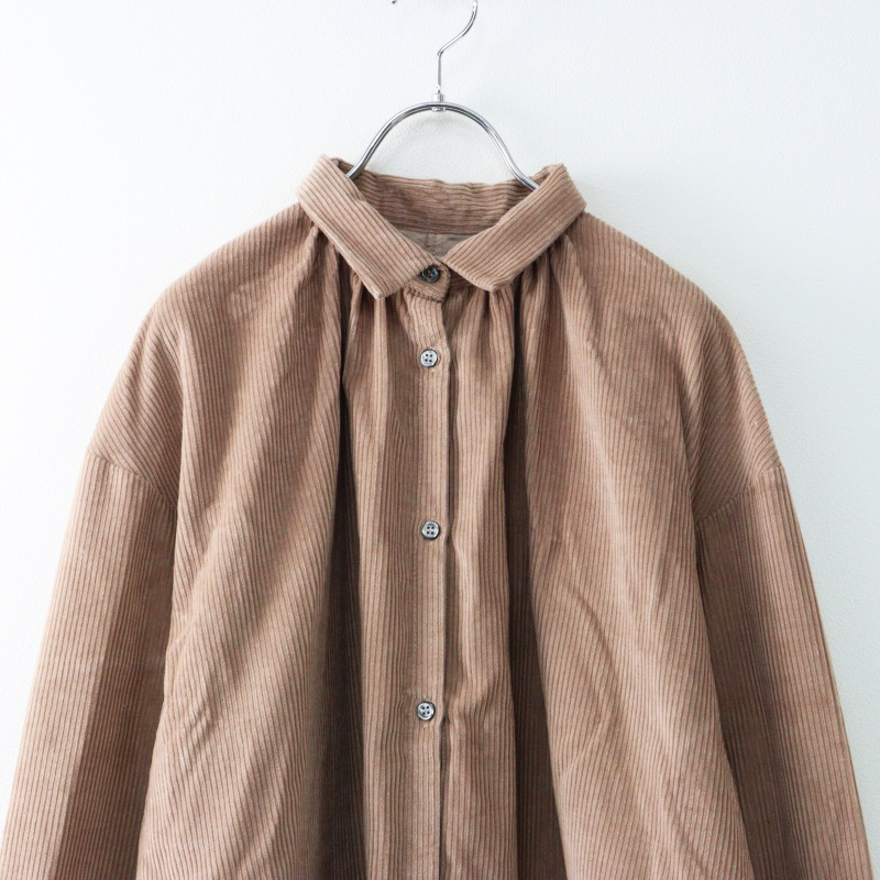 ポーランド製 オネット Honnete コットンカシミヤ コーデュロイ チュニック 長袖シャツ ピンクベージュ/羽織 ハオリ【2400014466645】