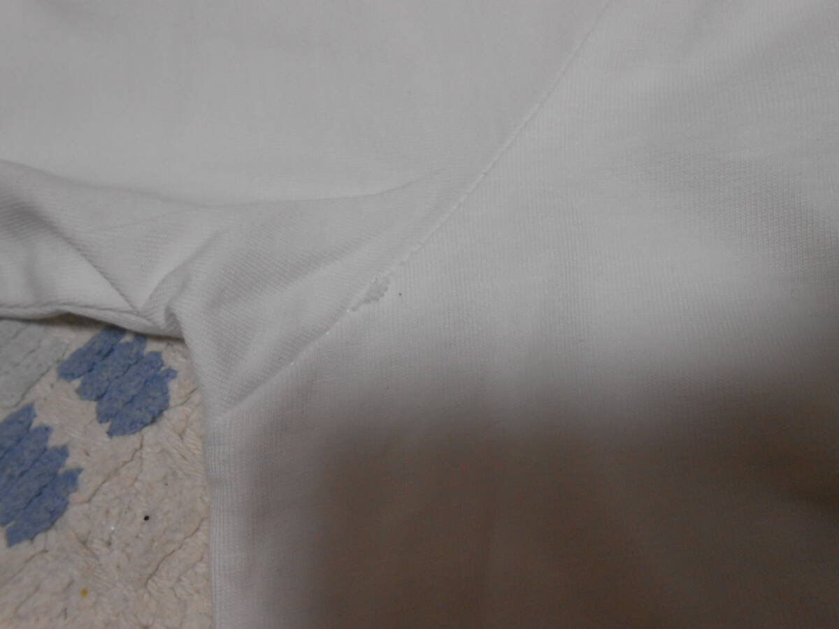 左脇下あたりに製造過程で出来てしまった、糸のほつれが見られます。