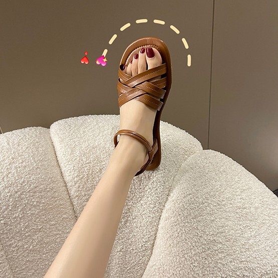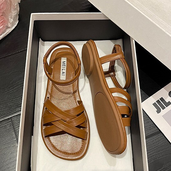 ぺたんこ サンダル レディース ビーチサンダル ローマブール 婦人夏靴 ストラップサンダル ストラップ  夏コーデ ブラウン 24.5cm