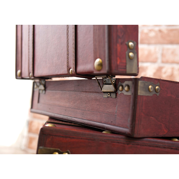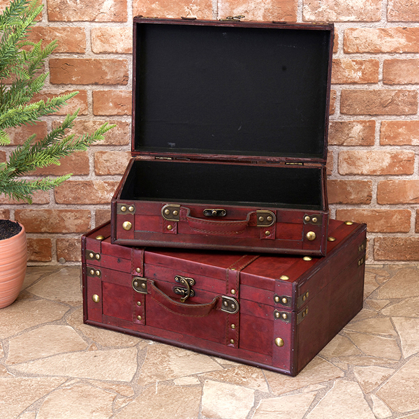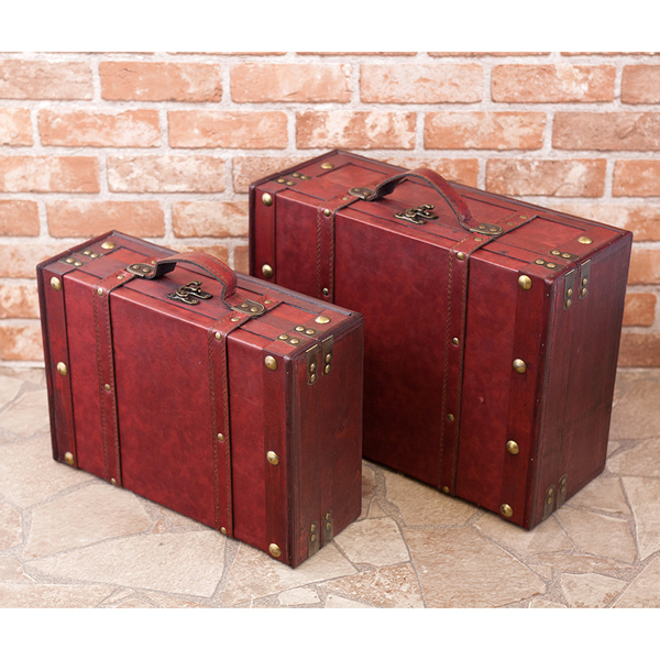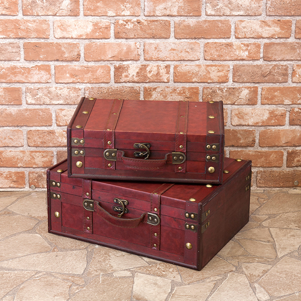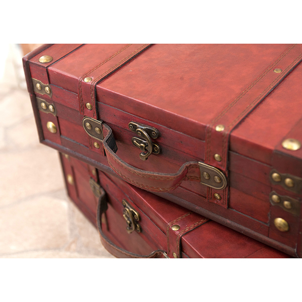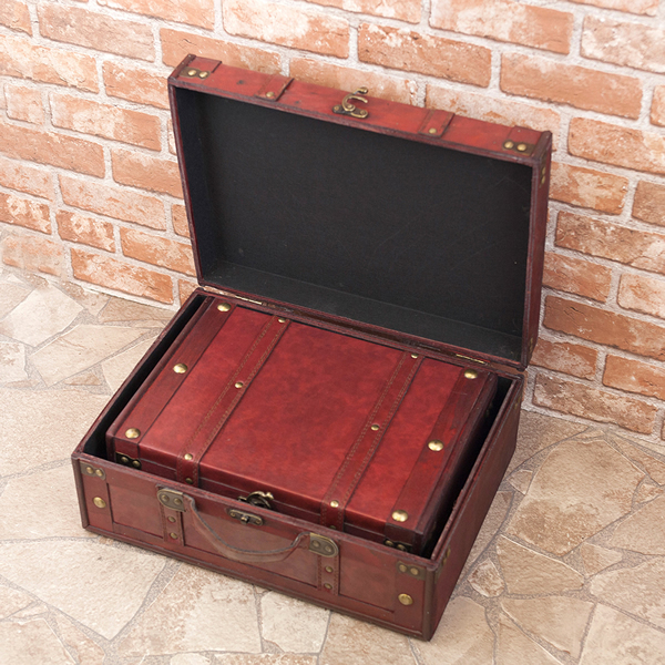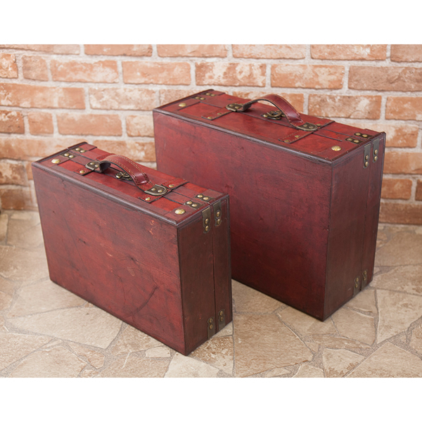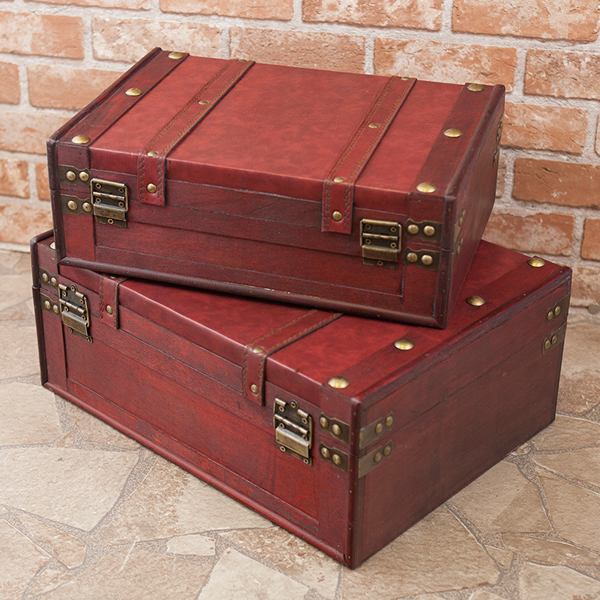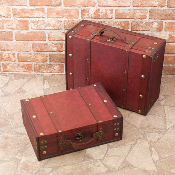 トランク 2個セット 収納ボックス 収納箱 おしゃれ 木製 置き物 アンティーク レトロ ビンテージ 加工 宝箱 ふた 蓋 入れ物 インテリア 赤