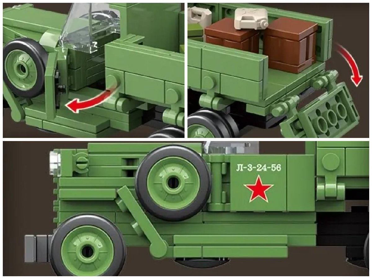 商品説明 ITEM INFO 第二次世界大戦中は軍用車両としても多用されたGAZ-AA AFM ソ連軍 GAZ-AA 398Blocksです。 楽しく組み立てて、カッコよく飾れるAFM ブロックシリーズです。 GAZ-AAは、アメリカのフォード AA トラックを原型として、ソビエト連邦において生産されたトラックです。第二次世界大戦中は軍用車両としても多用されました。1.5トンの積載量にちなみ、ポルトルカ:1.5の意の愛称で呼ばれました。 そんなGAZ-AAを398個のブロックで構成されたキットで再現!ほどよい組ごたえでブロックビギナーやお子様でも制作しやすいキットになっています。 手動ながら完成後も楽しめる可動ギミックを搭載しています! 楽しく作れてインテリアとしてもグッド!ミリタリーマニアやブロック好きな方に是非! 商品基本情報・スペック ITEM SPEC ●商品名 : AFM ソ連軍 GAZ-AA 398Blocks ●商品番号 : M0102T ●ブランド : AFM ●パッケージサイズ : 420mm×300mm×50mm ●完成サイズ(各部最大) : 約160mm×64mm×62mm ●素材 : ABS ●総ブロック数 : 398 ●対象年齢 : 15歳以上 注意事項 ITEM NOTE ∇商品固有の注意事項 ※小さなブロックが多く含まれています。誤って飲み込まないようにご注意ください。窒息などの危険があります。 ※誤飲の危険がありますので対象年齢を守り、15歳未満のお子様には絶対に遊ばせないでください。 ※当商品はレゴ(LEGO)商品ではございません。 ※弊社取扱商品以外への互換性はありませんのでご了承ください。 ∇ご購入時の留意事項 ※商品はすべて点検してからのお届けになります。商品によってはパッケージの開封等を行う場合もございますことをご了承ください。 ※商品には万全を記しておりますが、万一不備な点がございましたら、お手数ですがお問い合わせフォームにてご連絡頂ますようお願い致します。なお、海外製品につきましては、輸入時についた若干の傷、痛み等が見られる場合がございます。 国内製品のような完全品をお求めの方はご遠慮下さい。 ※商品が適合外であった場合、またはお客様都合による交換・返品・返金は出来ません。よくお確かめの上、ご購入下さい。 ※モニター環境により、実際の商品の色と若干異なる場合がございますのでご了承下さい。 ※他サイトでも同時販売の為売り切れの際はご了承下さい。 ※売り切れの際は早急にご連絡させて頂きます。(当社休業日を除く) 関連商品 RELATED ITEM |