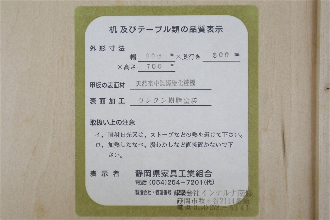 美品◆インテルナ南條 パリの雑貨屋 F-21 デスク 平机 机 引出し付き 天然木 定価82,500円 コンソールテーブル シンプル 日本製