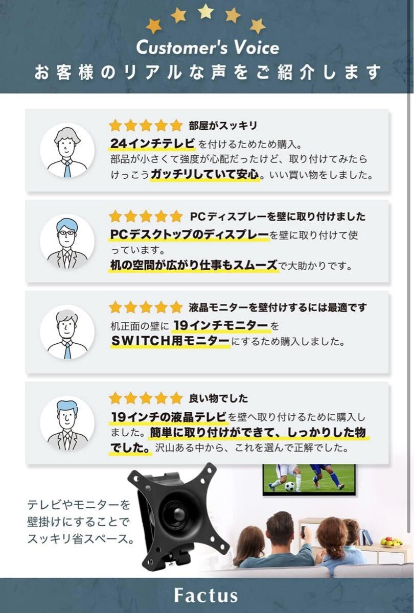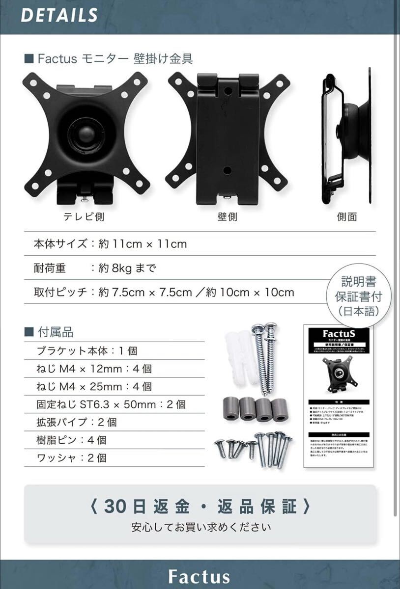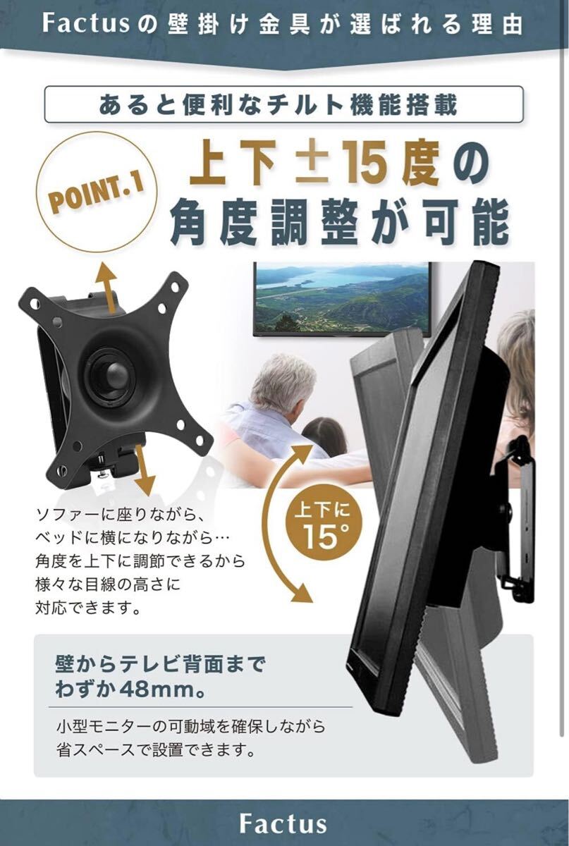 モニター 壁掛け金具 VESA 液晶テレビ 12-24インチ対応 上下左右角度調節可能 耐荷重8kg ネジ 取説付き
