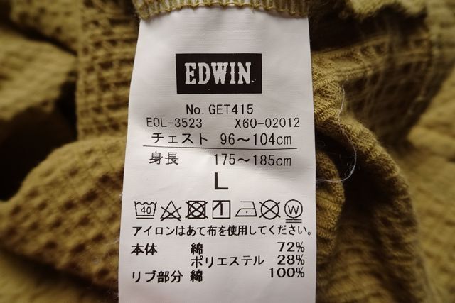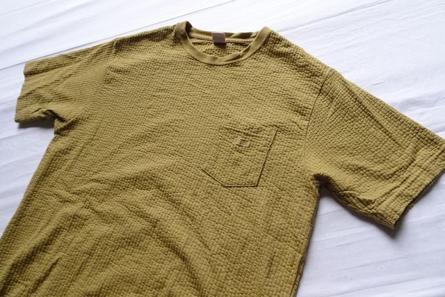EDWIN/エドウィン/半袖Tシャツ/リップル加工生地/クルーネック/左胸ポケット/カジュアル/黄土色/Lサイズ(6/11R7)