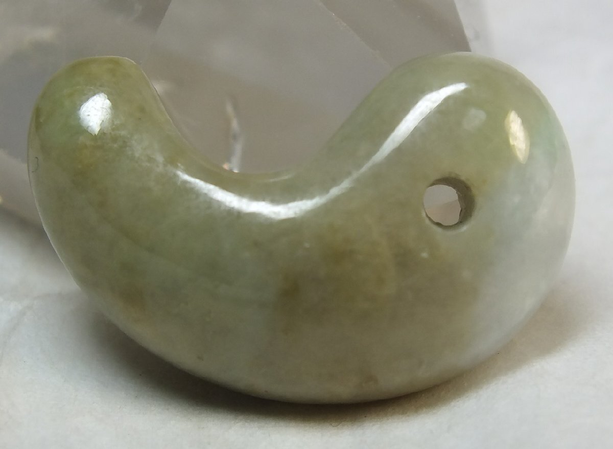 ▲商品説明▲ | サイズ:31×21×厚11mm 重さ:11.5g 糸魚川翡翠は日本翡翠独特な落ち着いた石質で、最近では入手困難になりつつある希少品です。石コレクションやアクセ作り、下げ飾り等に。 ※当方の糸魚川翡翠は、新潟のヒスイ海岸に打ち上げられた小翡翠です。地元の職人さんにより、手磨きで作られた貴重な勾玉で、当サイトでも数に限りがある人気商品です。 ☆商品につきましては注意を払った検品を行っておりますが、稀に石の表面に彫りとは違うクラック状の筋や窪みが見受けられる場合が御座います。それは石本来の石紋で傷ではありません(割れが生じ易いヒビではありません)。返品の対象にはなりませんのでその旨御了承の上、ご検討下さい。 |