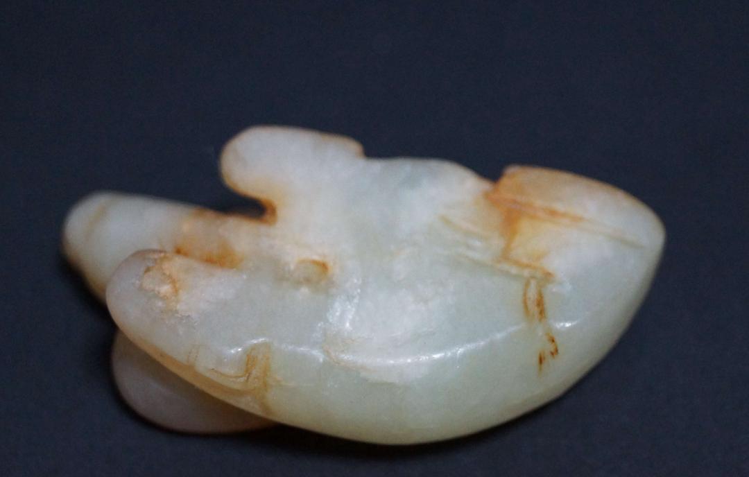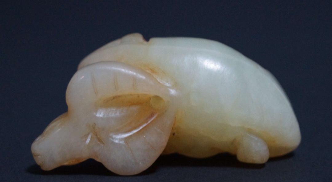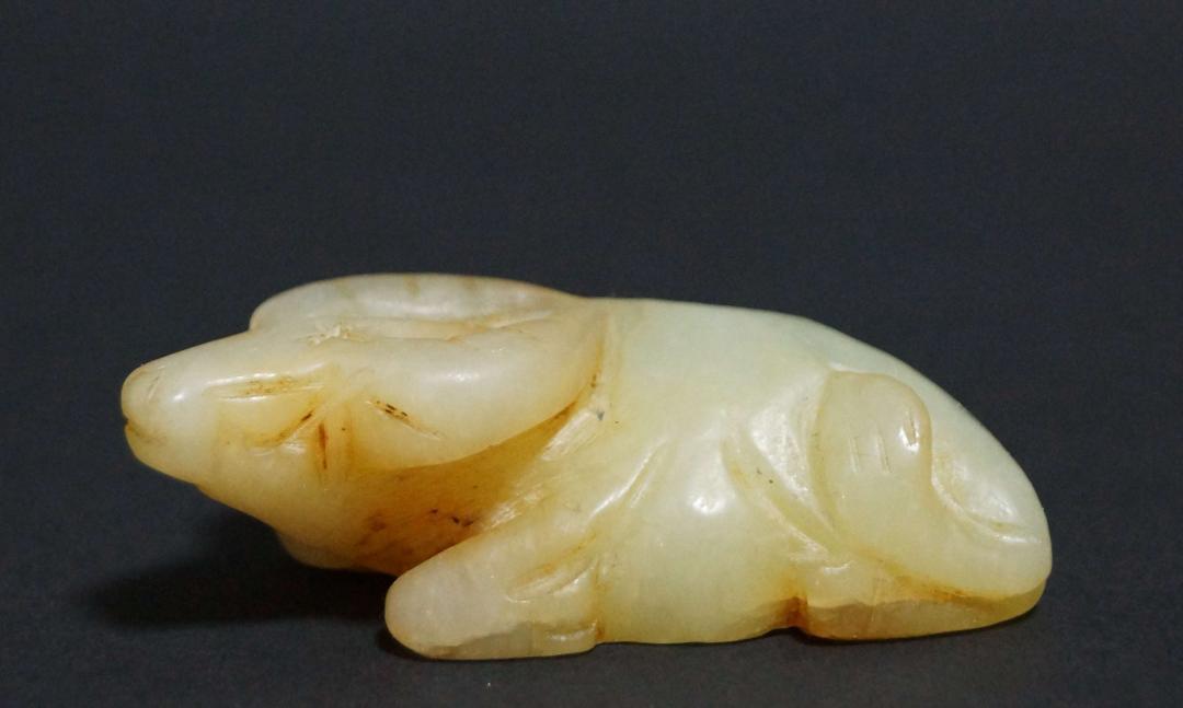 【寂】古代 玉製 細工彫り 牛 根付 緒締玉 提げ物 装飾品☆時代物☆s70611