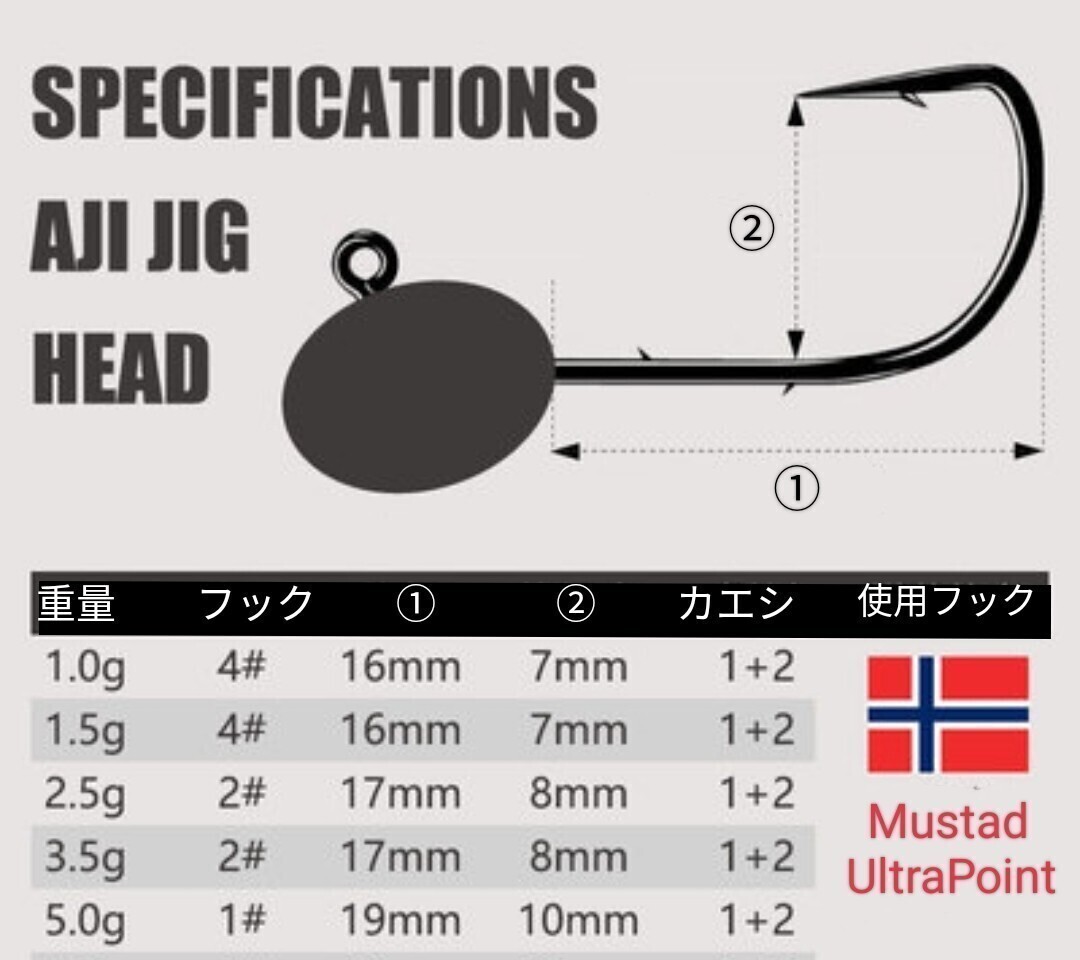 アジングやメバリング、ライトロックにオススメのよく釣れるジグヘッド10個セットです。