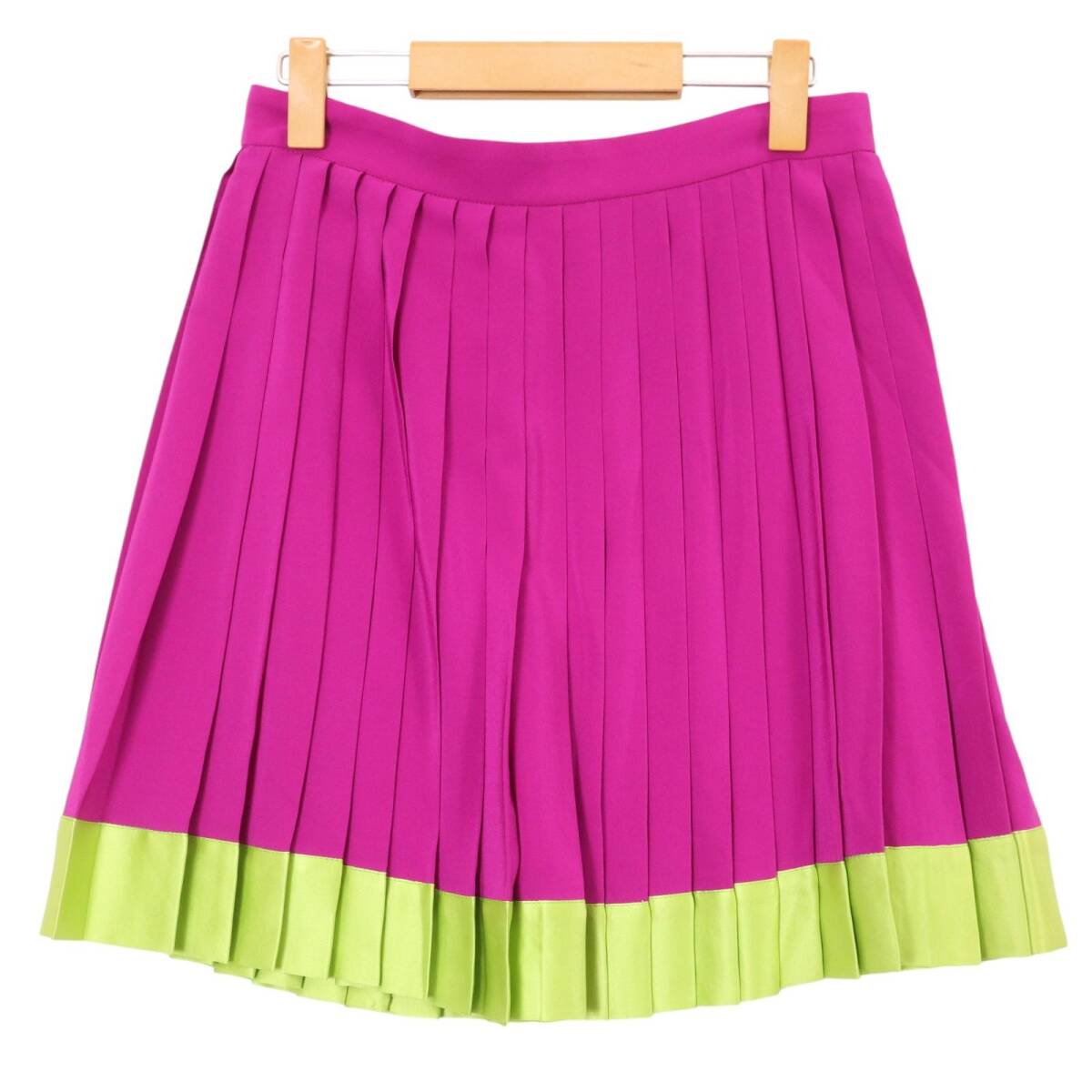 【新品未使用/正規品】DOLCE&GABBANA ドルチェ&ガッバーナ レディース プリーツスカート シルク バイカラー ネオンカラー マゼンタピンク