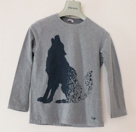 イタリー製! イルグッフォ Il Gufo Tシャツ カットソー 男の子 子供服 ベビー服 キッズ グレー×ブラック オオカミ柄