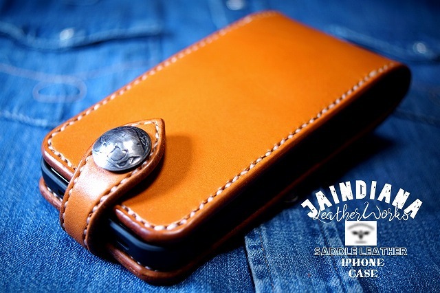 | iPhone16ケース 手縫い サドルレザー キャメル(iPhone16pro,16proMax,16Plus仕様での製作も可) | ||||