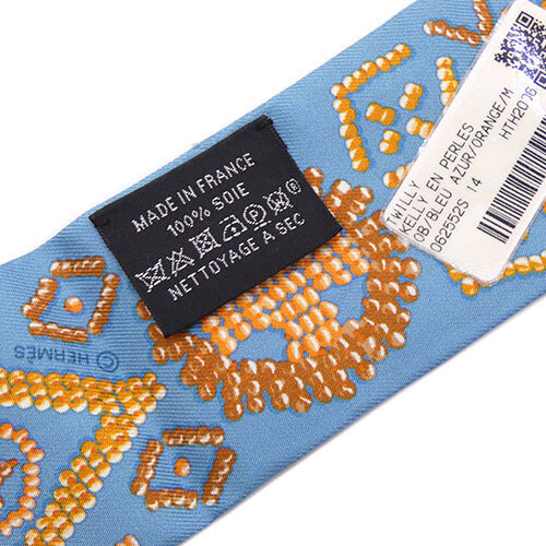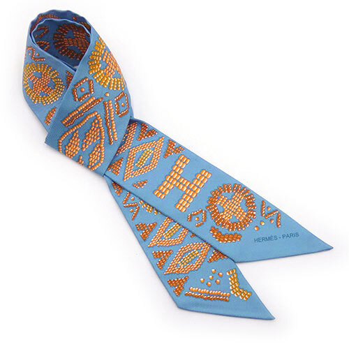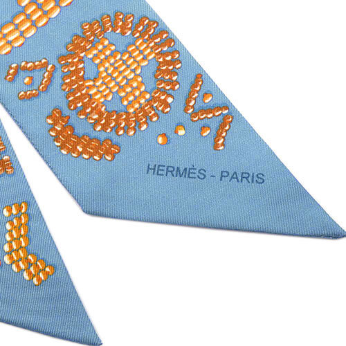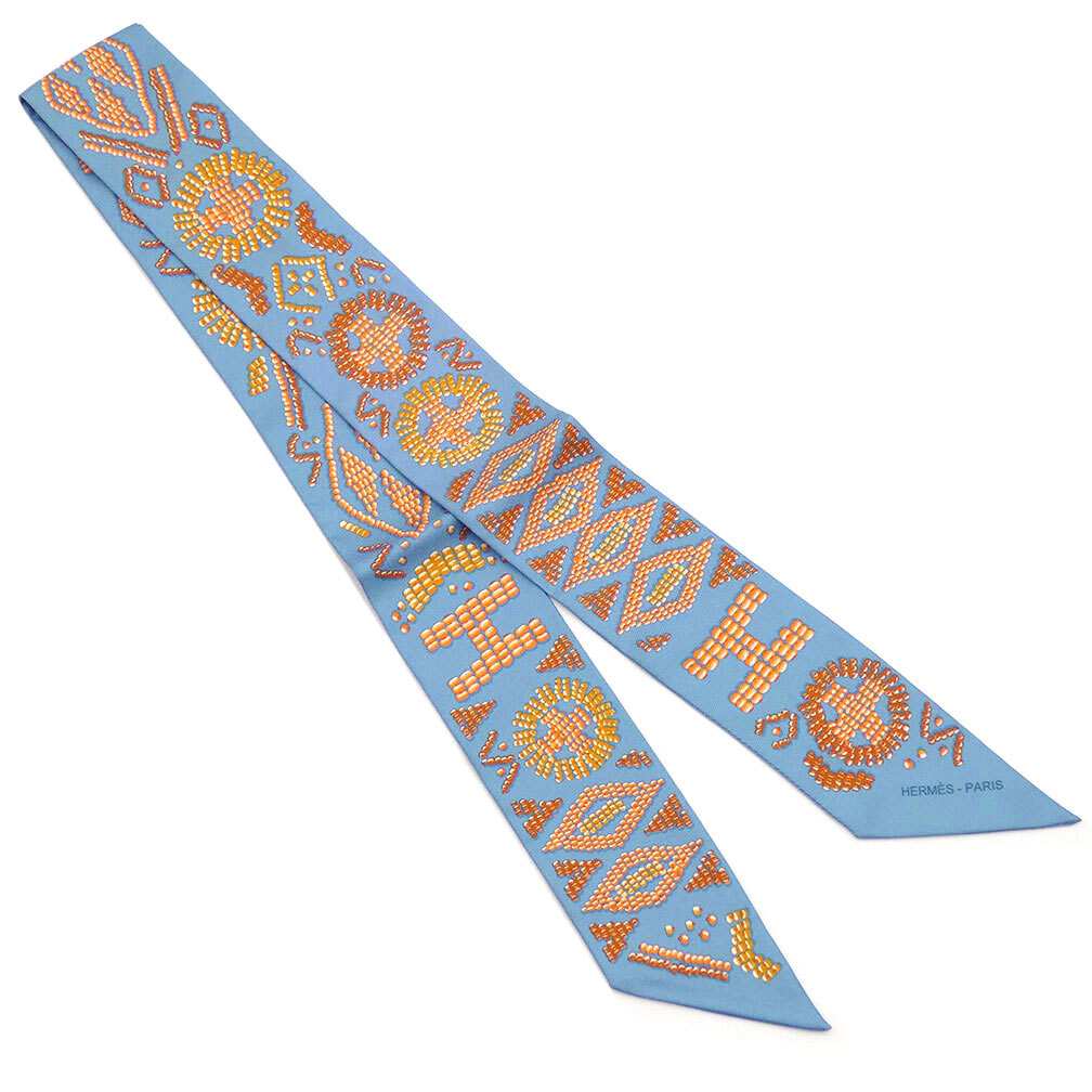 エルメス スカーフ HERMES シルク ツイリー リボンスカーフ KELLY EN PERLES ケリーアンペルル ブルー オレンジ 水色 062552S OJ10662