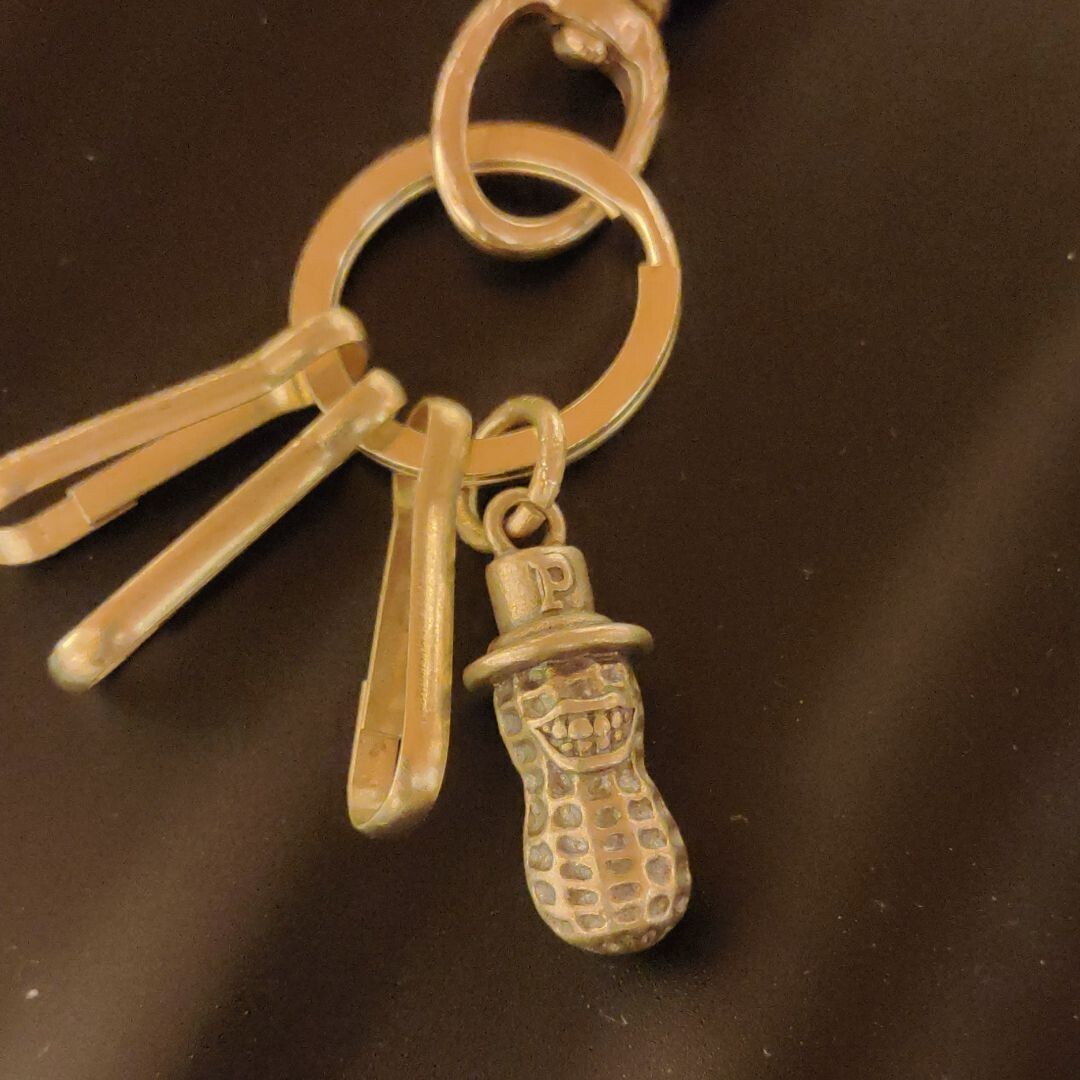 ピーナッツを型どった真鍮製チャームも付いています。