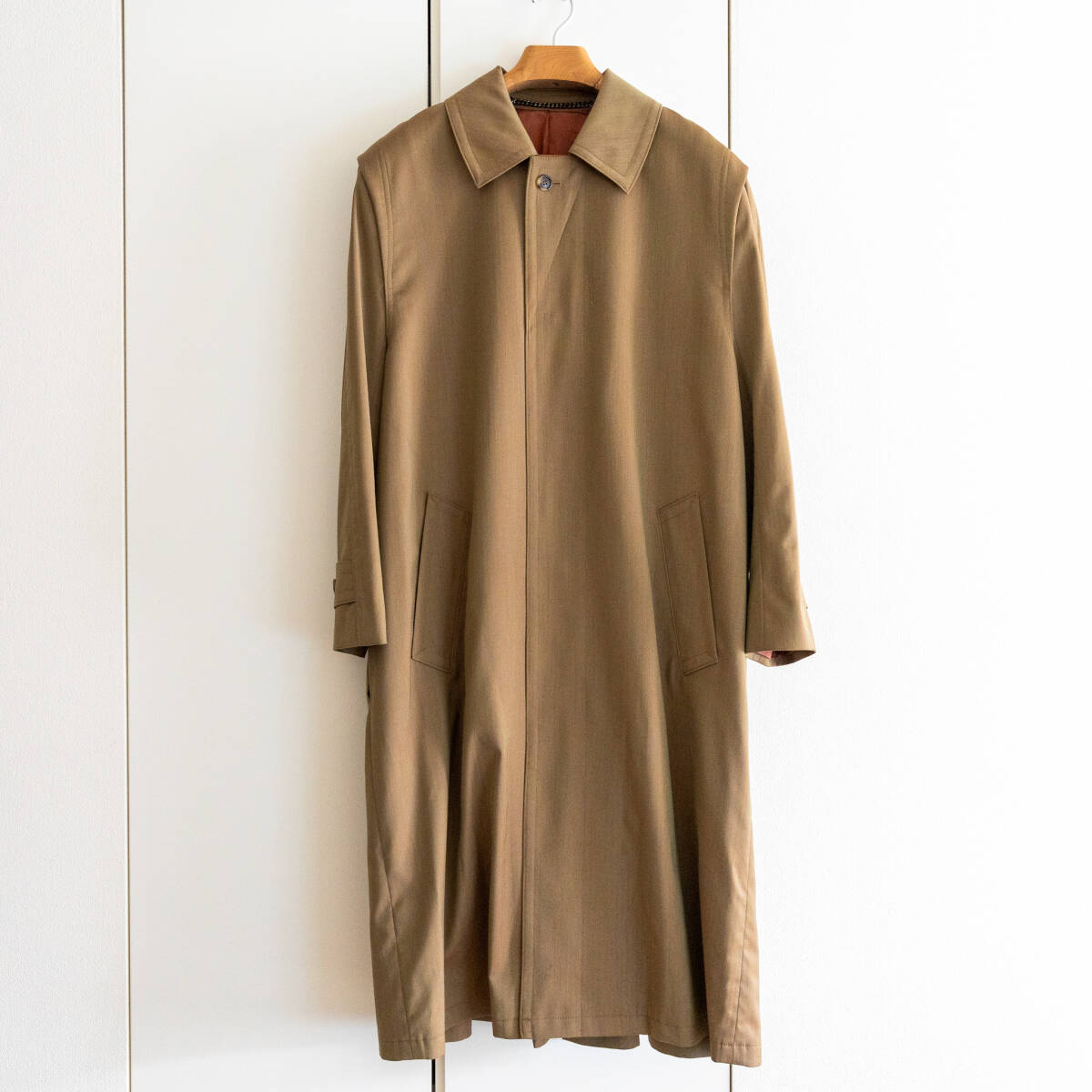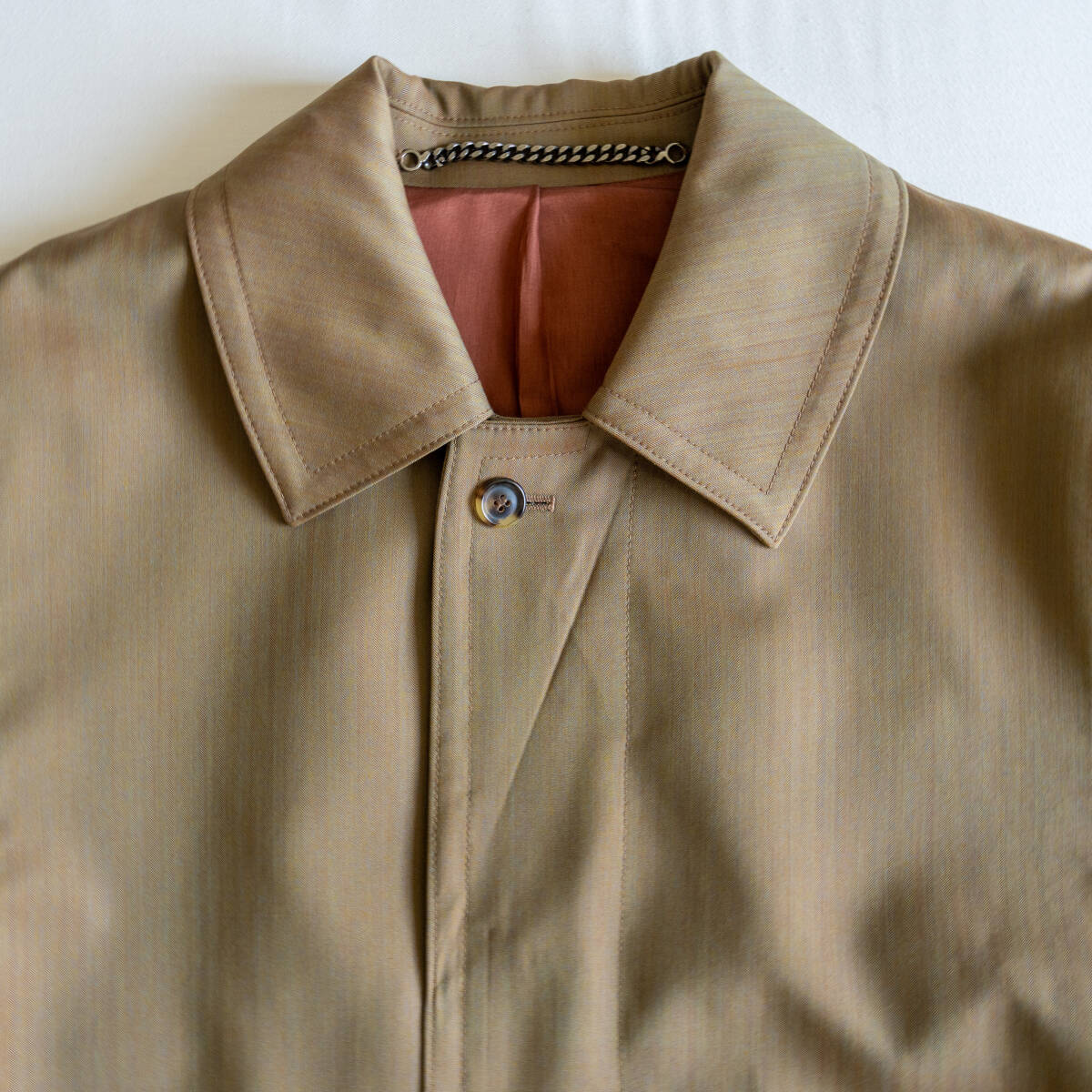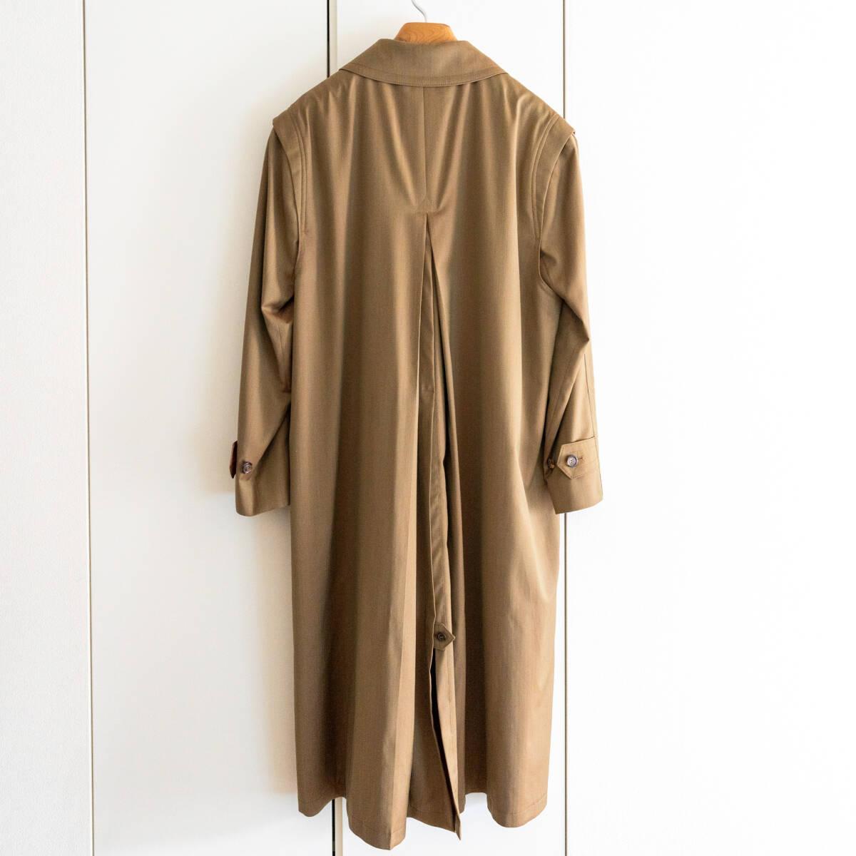 オーバーサイズで薄手のウールです。黄土色のようなブラウンで、若干玉虫色のようにゆらぎのある色味でおしゃれです。