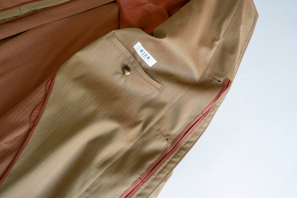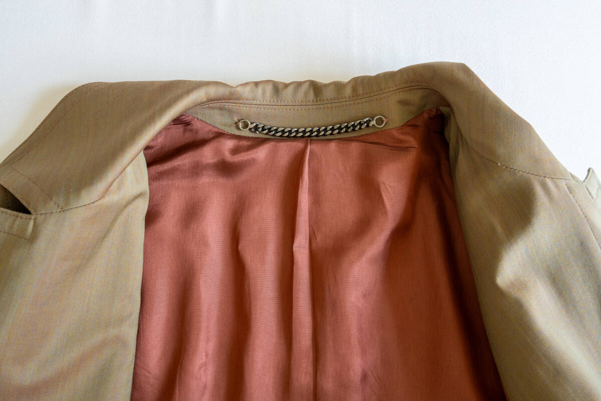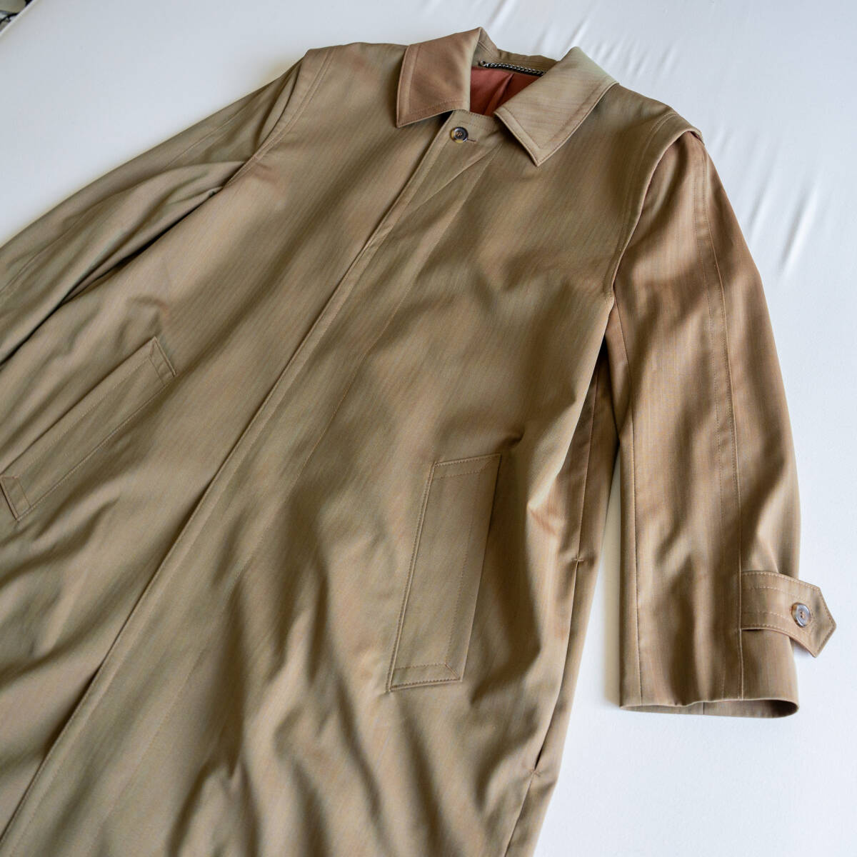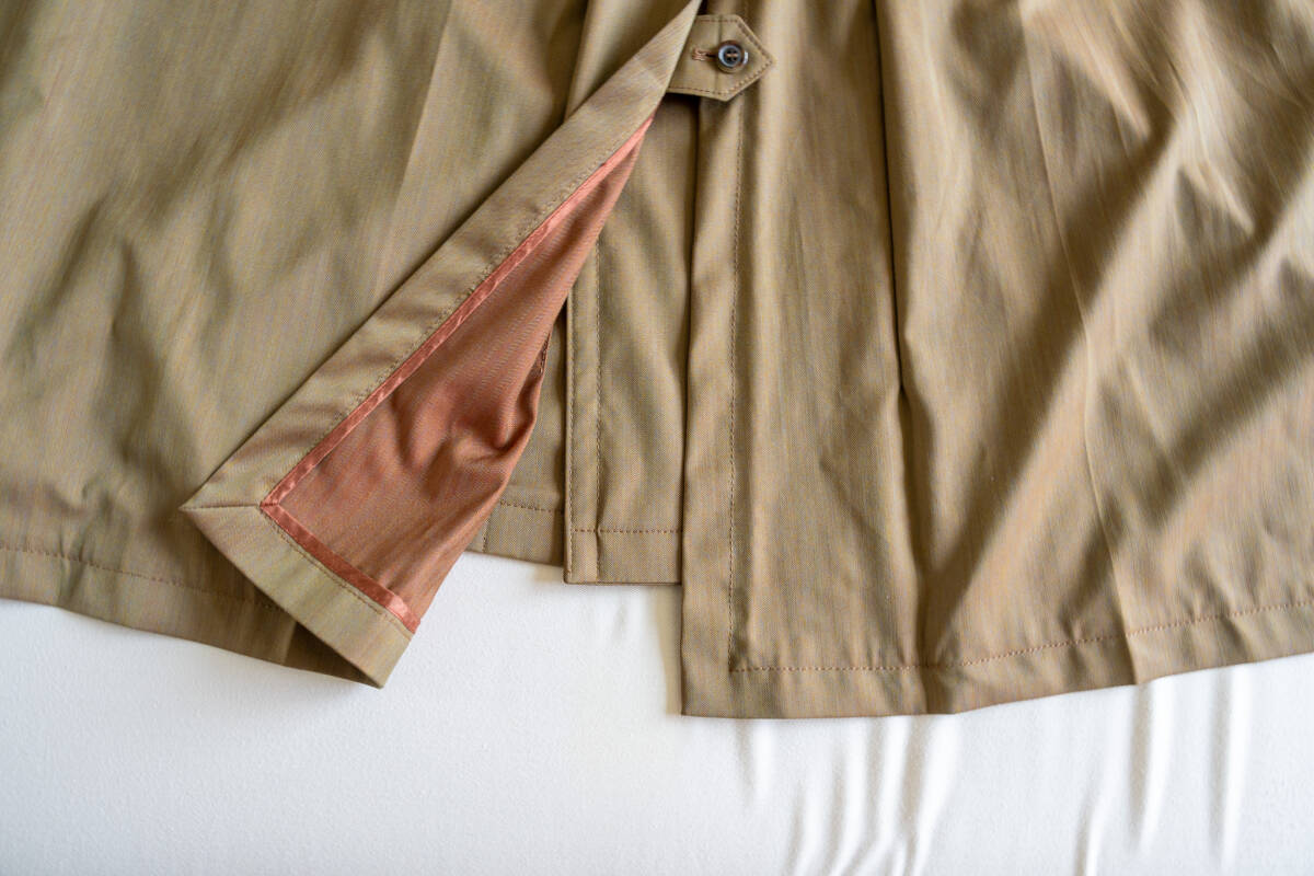 オーバーサイズで薄手のウールです。黄土色のようなブラウンで、若干玉虫色のようにゆらぎのある色味でおしゃれです。