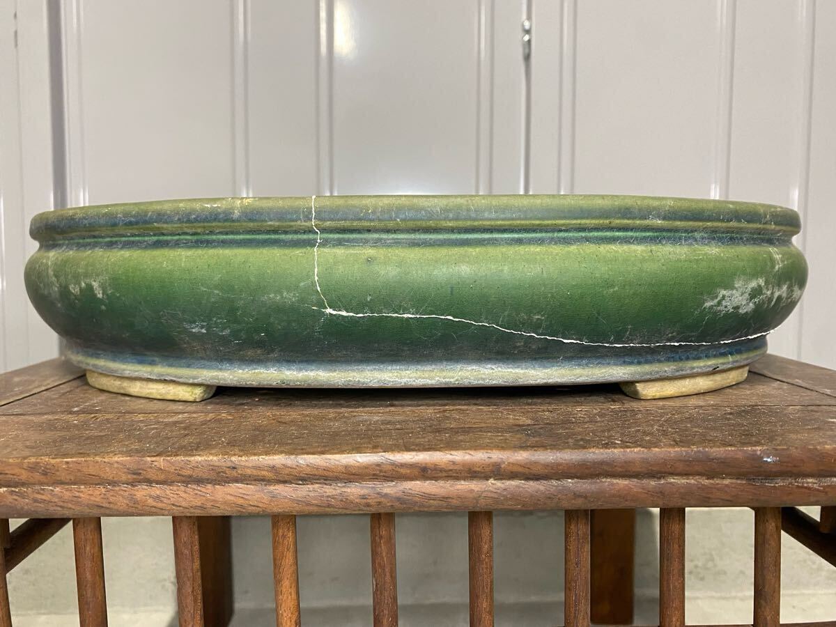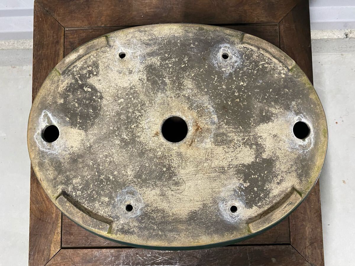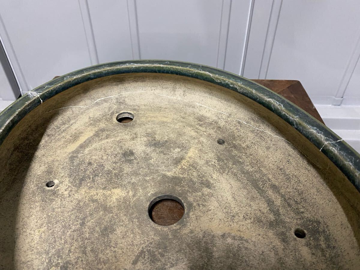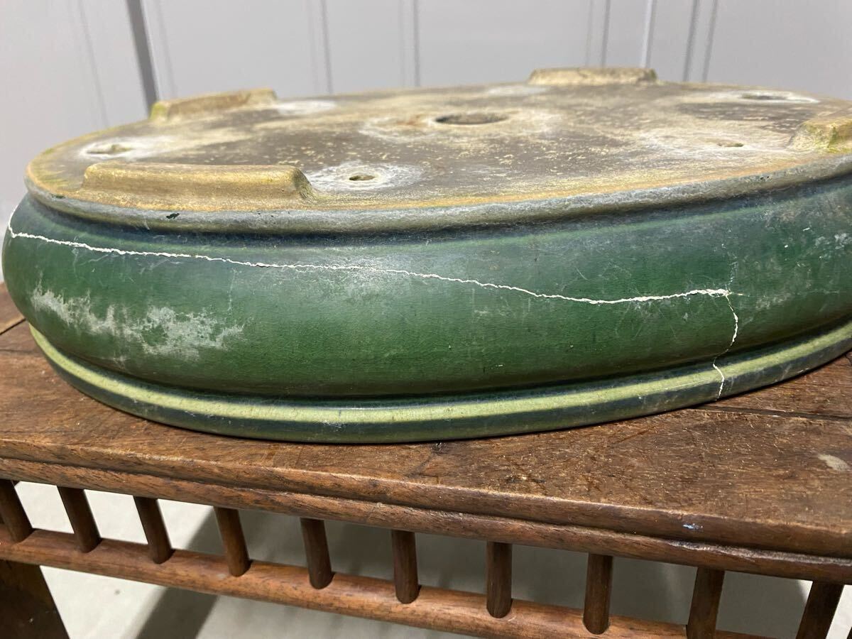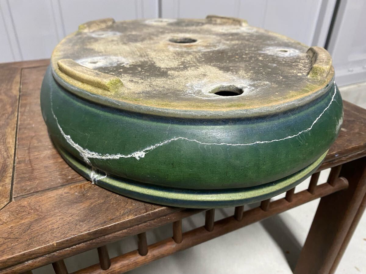 一度割れた箇所を接着剤で補修したあとがあります。屋外で保管していたので水あかや土汚れなどが多少あります。詳しくは画像をご確認ください。