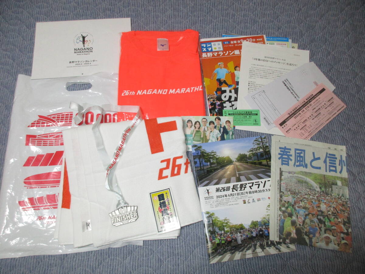 第26回 長野マラソン 2024 ナガノマラソン 4/21 大会出場者記念品 ミズノ製 Tシャツ バスタオル メダル 未使用品 ランニング 駅伝 マラソン