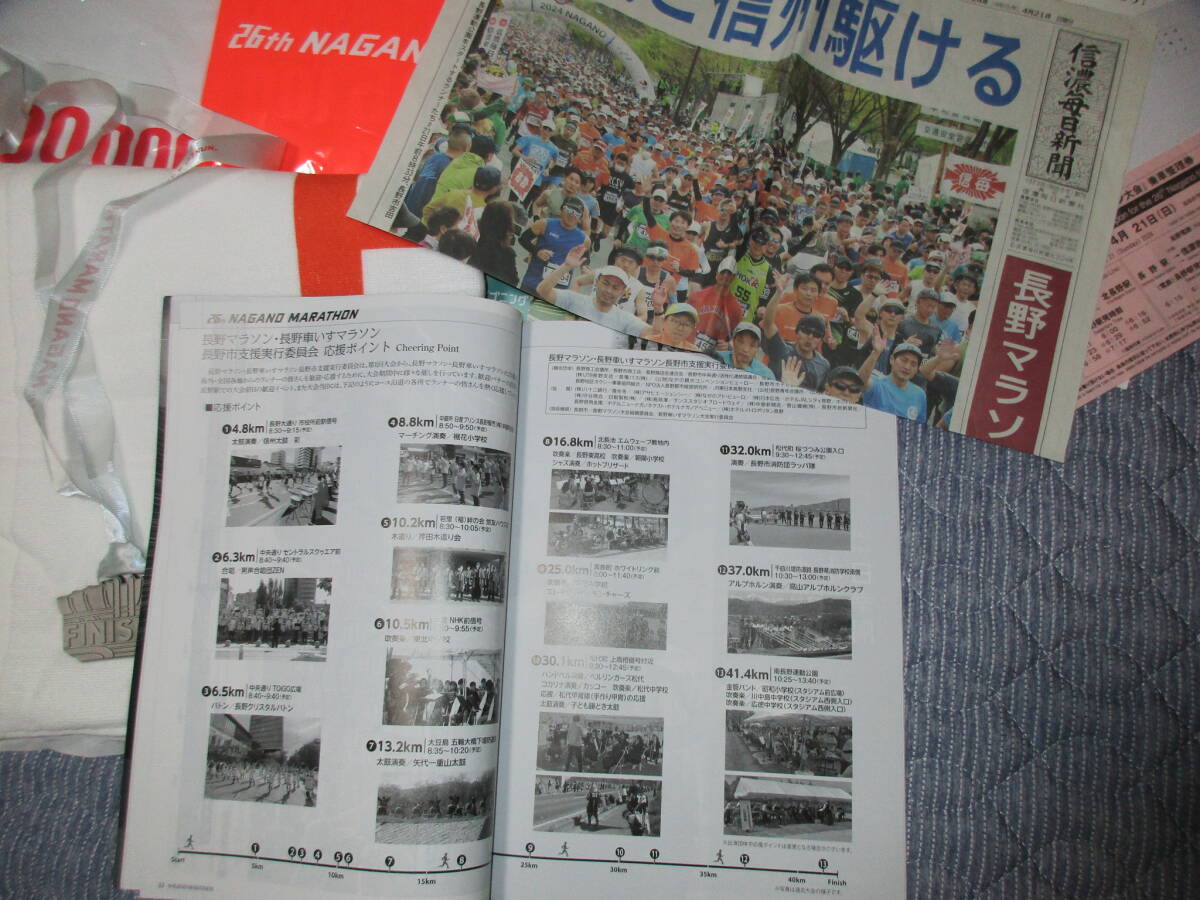26回 長野マラソン 2024 ナガノマラソン 4/21 大会出場者記念品 ミズノ製 Tシャツ バスタオル メダル 非売品 未使用品 ランニング 駅伝 マラソン