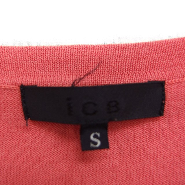 アイシービー iCB サマー ニット セーター 半袖 オーバルネック 無地 コットン 綿 S ピンク /FT17 レディース
