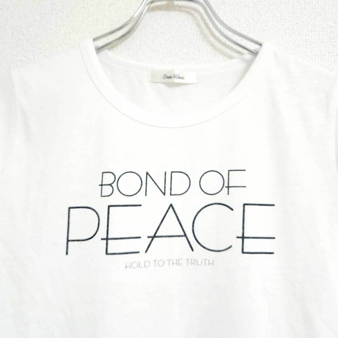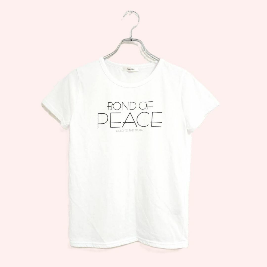 「BOND OF PEACE」のメッセージが胸元にプリントされ、カジュアルながらも程よく存在感のある一枚。