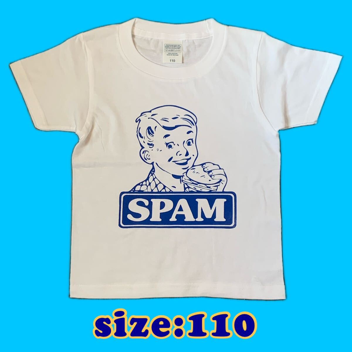 送料込★SPAM キッズTシャツ スパム レトロな男の子のキャラクター プリント アメリカンポップ アメカジ 子供服 サイズ110 白x青●新品