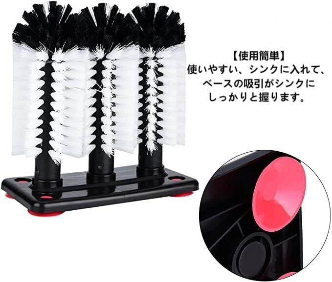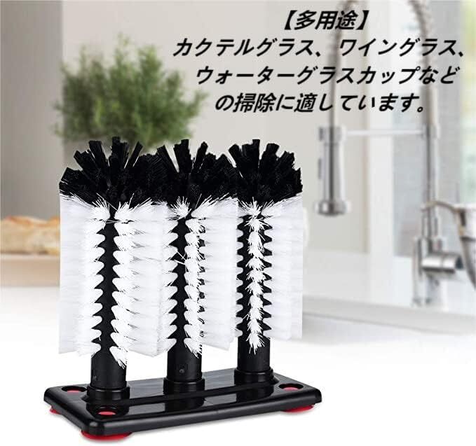 ガラスブラシ グラスの洗浄ブラシ グラスウォッシャー ガラスカップブラシ ガラス掃除機 清潔 3本のブラシが含む 速く便利 カクテルグラス
