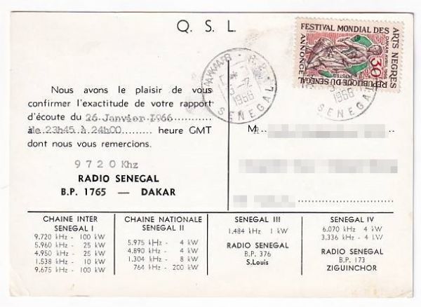 | 商品説明 | Radio Senegalのベリカードです。カード取得者の名前は出品上、画像から消してあります。 |