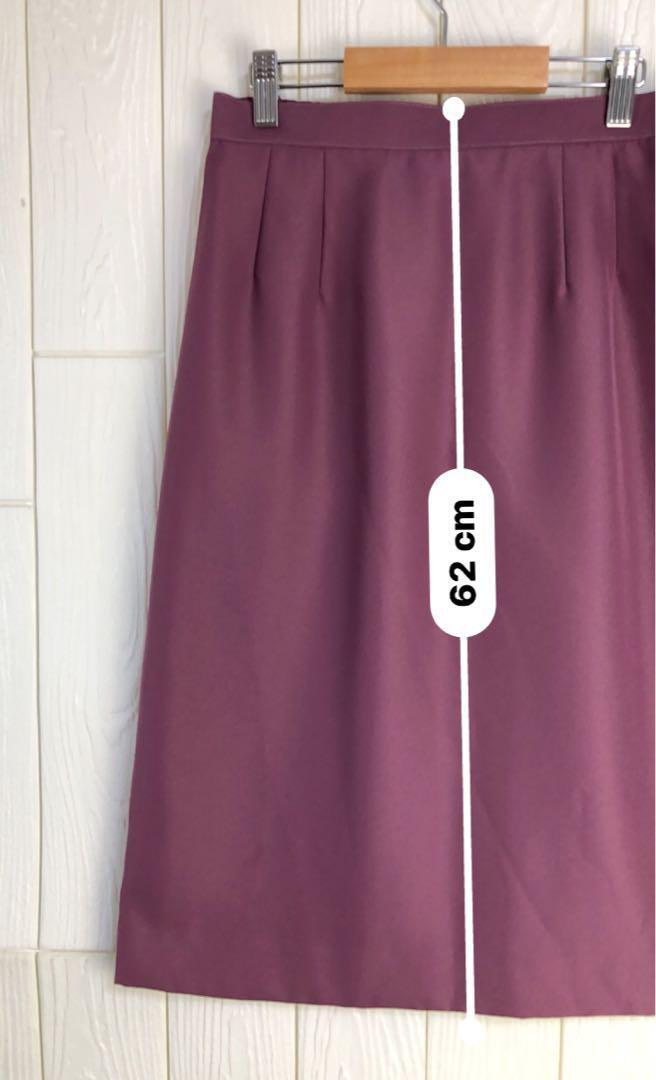 パープルのひざ丈スカート、ウエスト66cm、丈62cm。