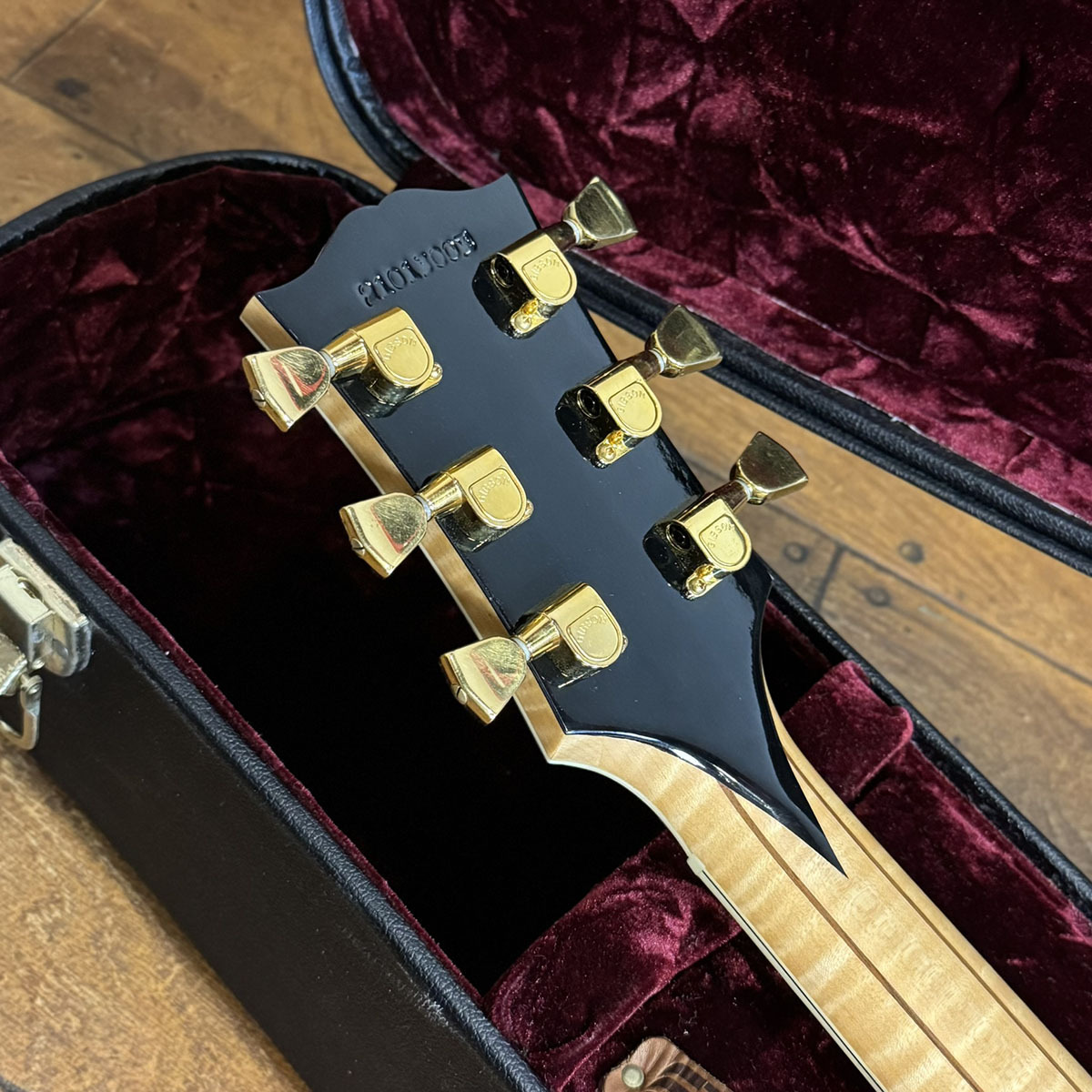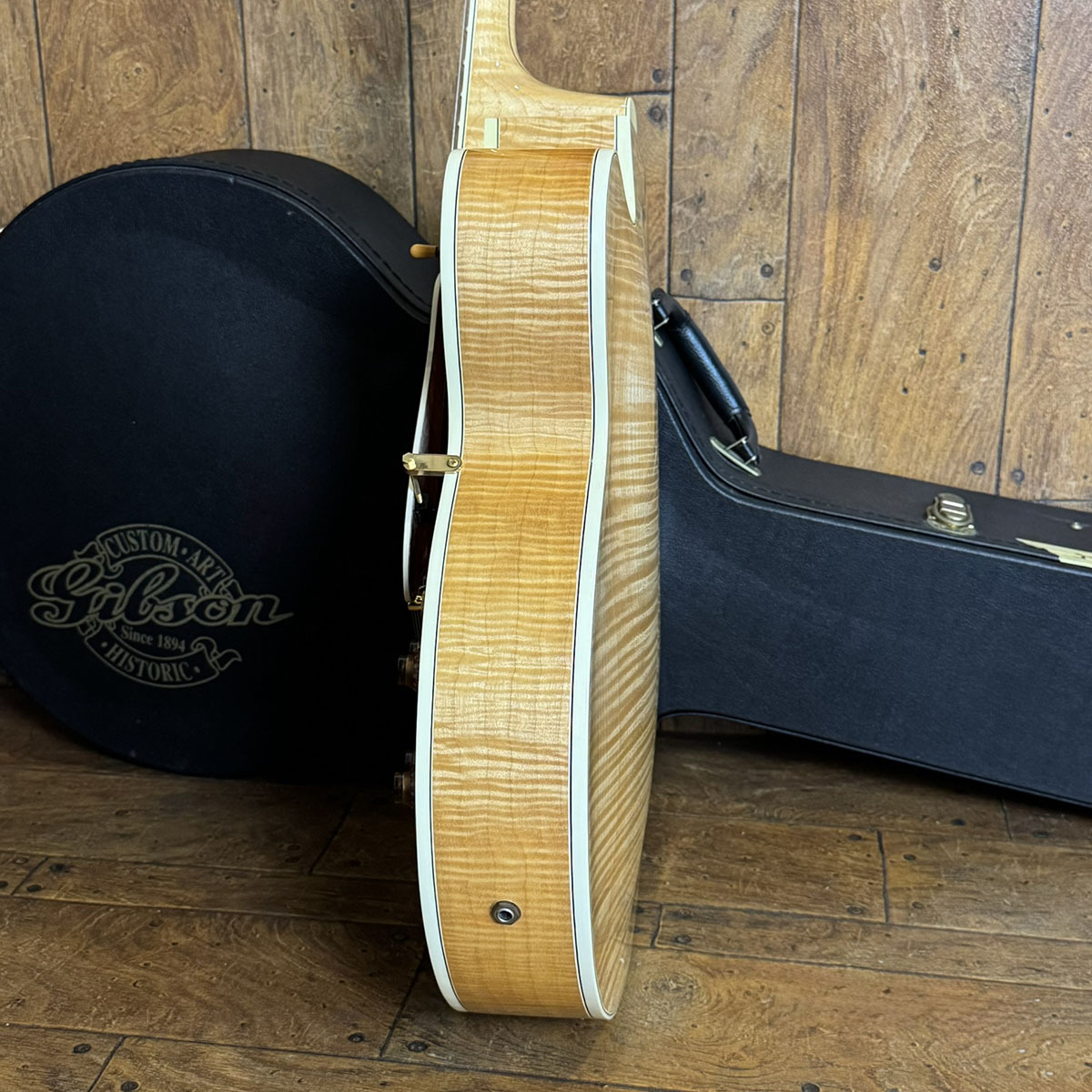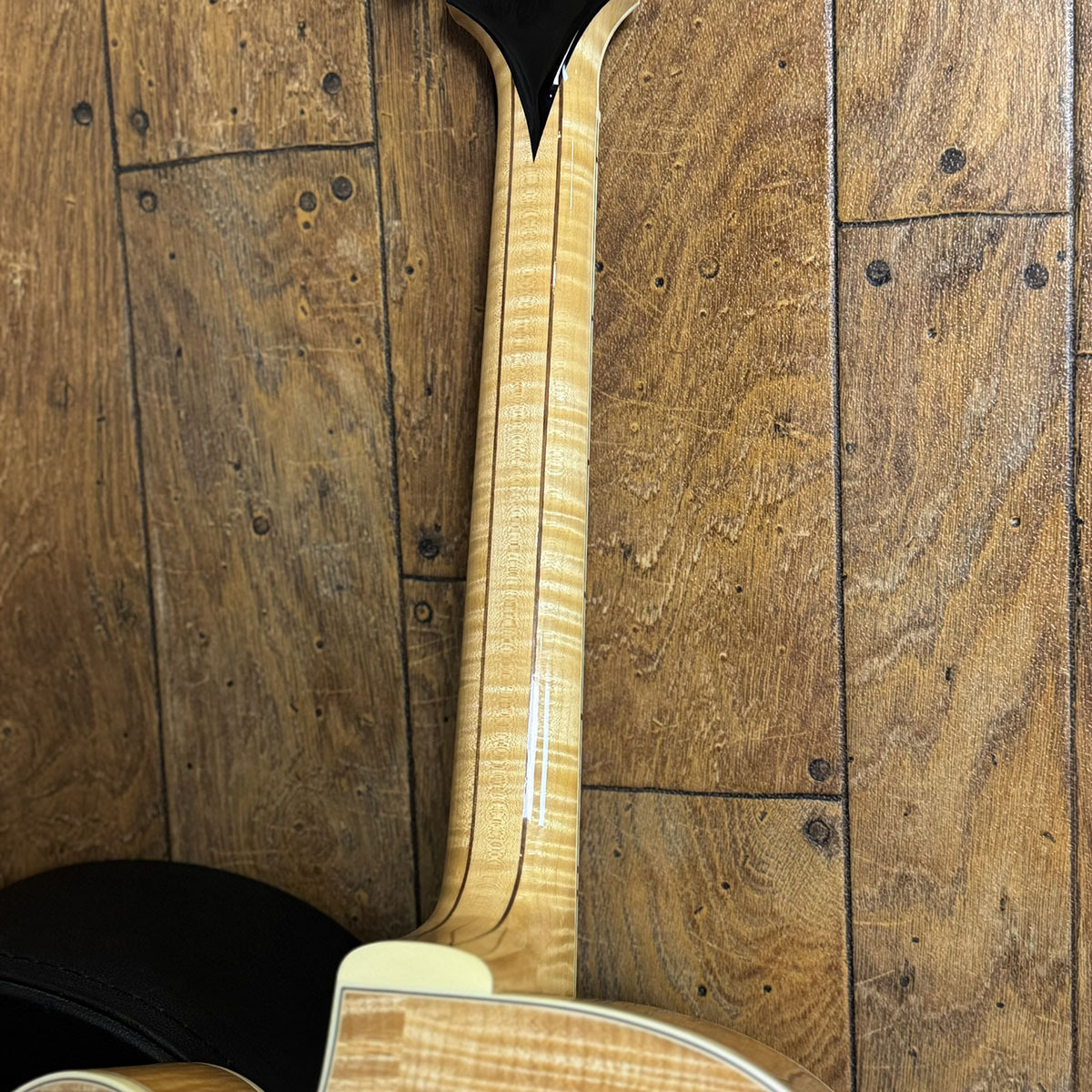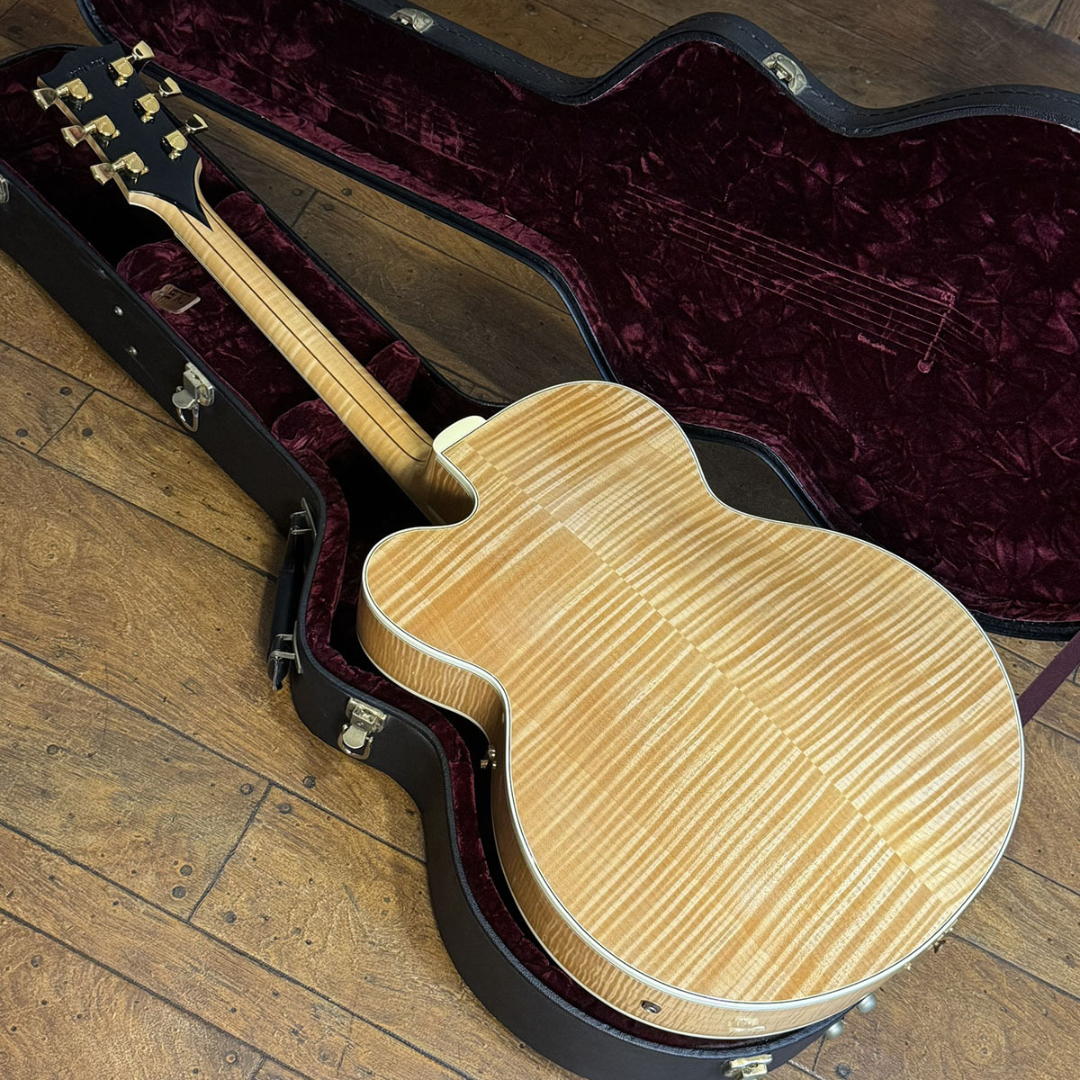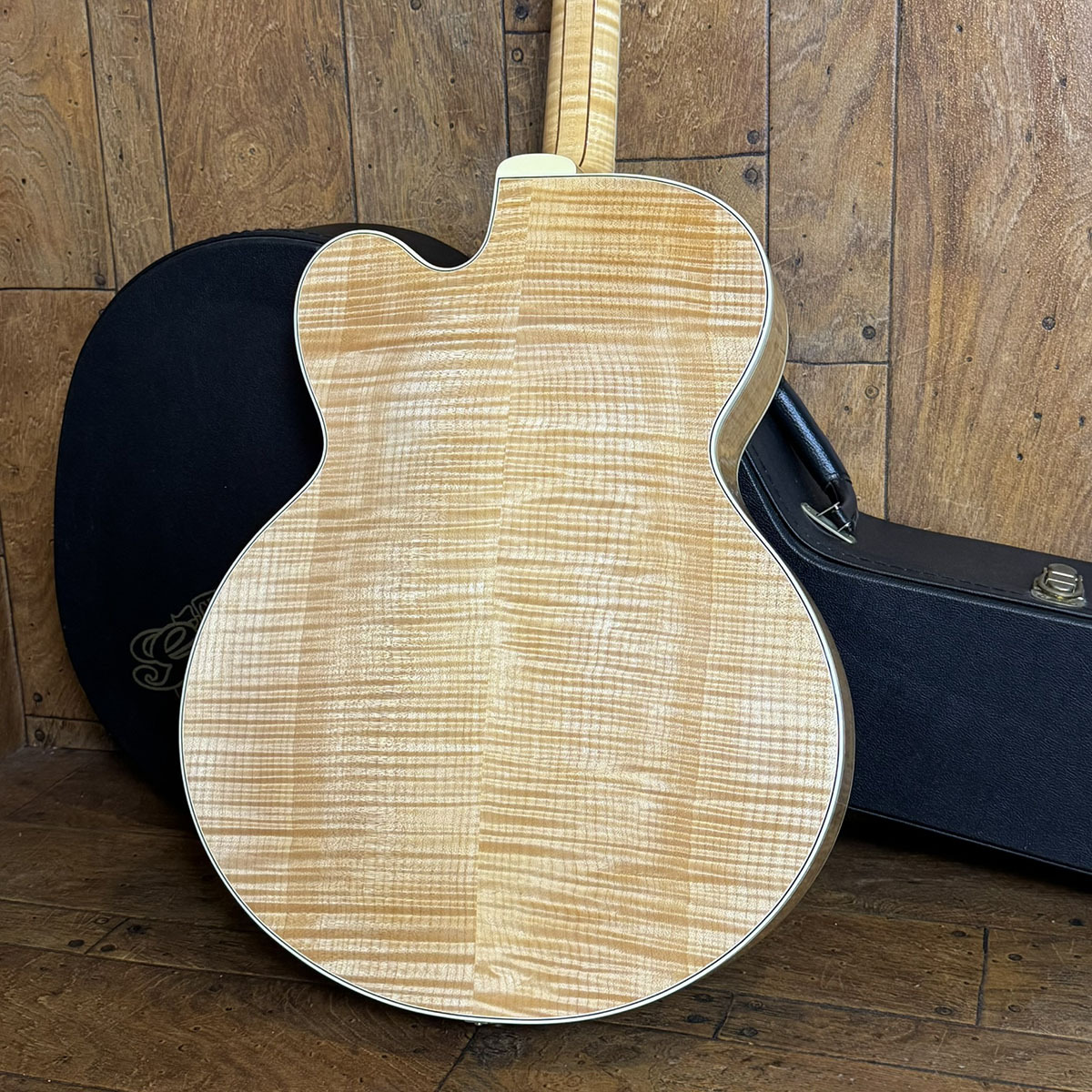 ナチュラルフィニッシュに相応しい整った木目のスプルースに、どこから見ても美しい、お手本のようなフレイムメイプルです。