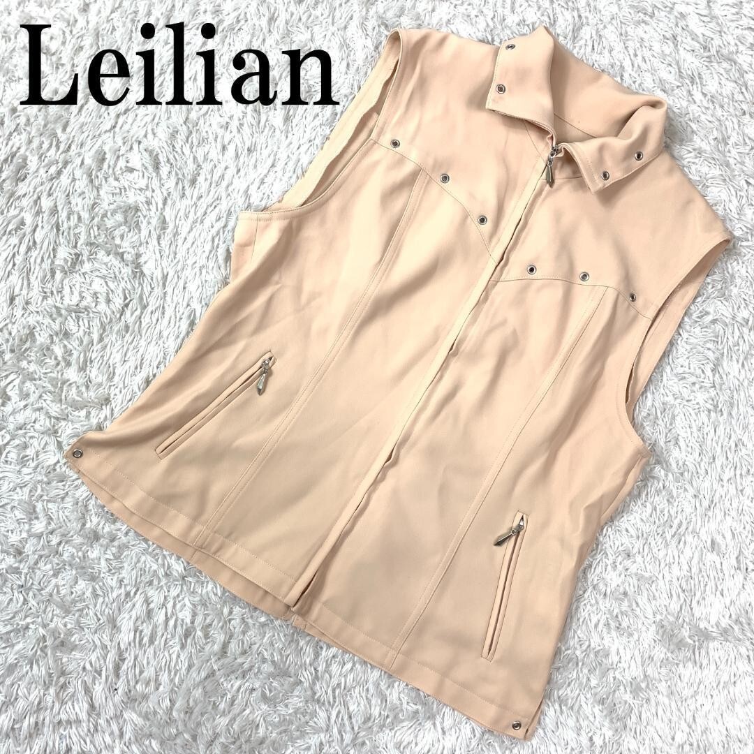 Leilian レリアン ジップベスト ピンクベージュ ポリエステル100% 11 B543