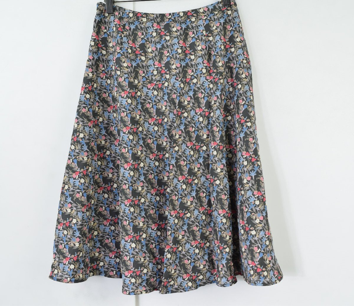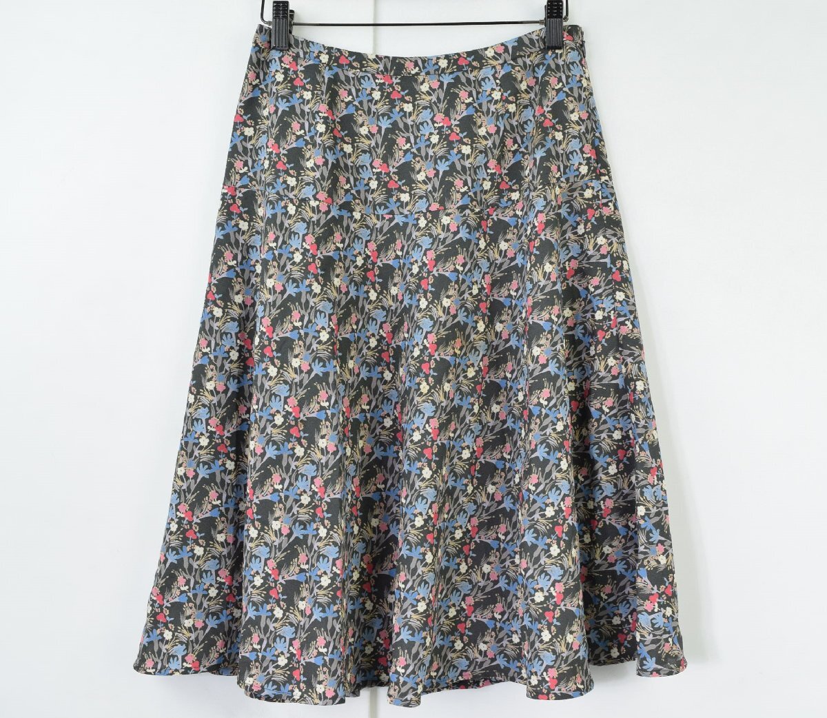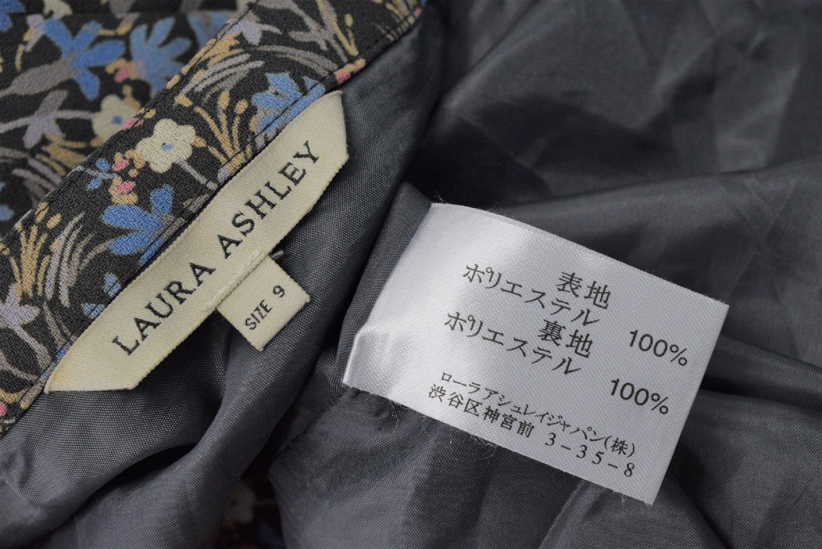 5000-KA00144★ローラアシュレイ 美品★オンオフ活躍♪ 小花柄フレアスカート 9号 グレー系 春夏秋 LAURA ASHLEY