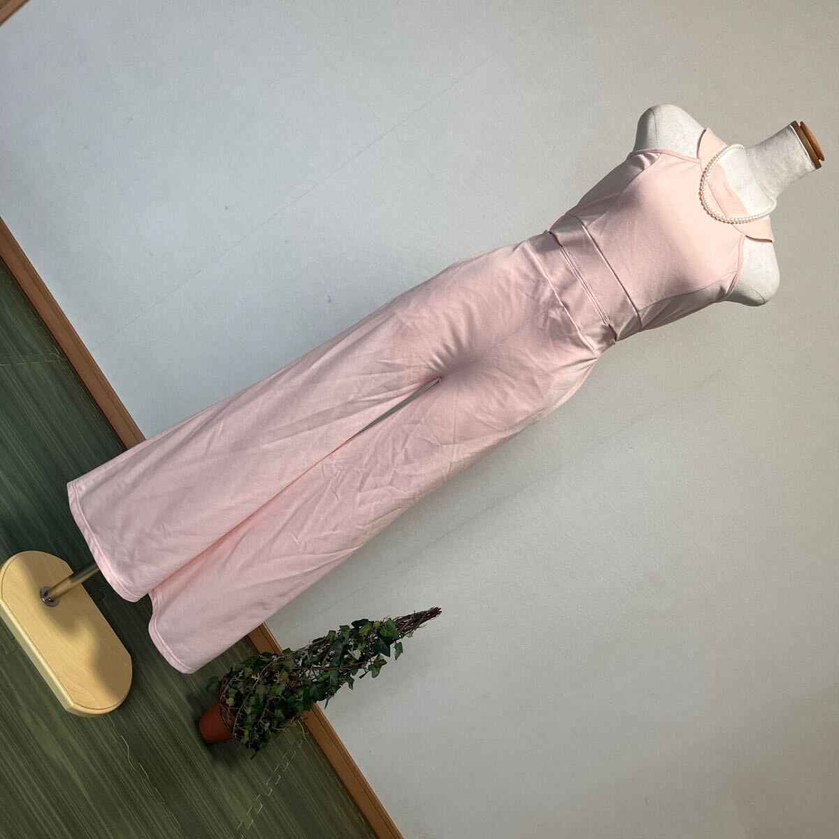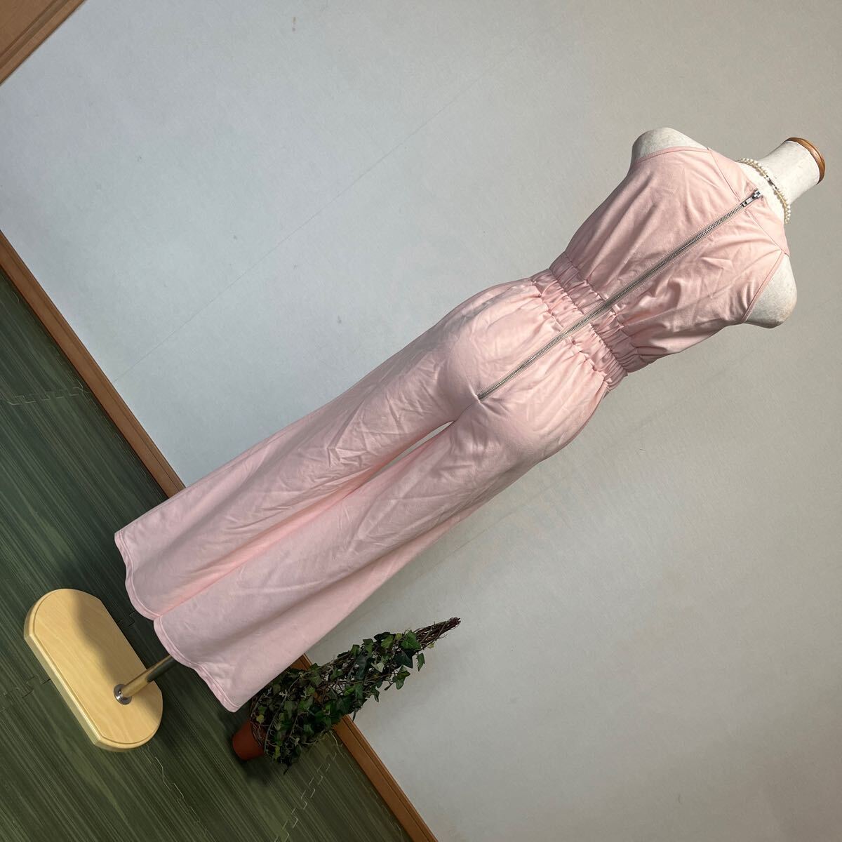 新品の 甘さ×クールなオールインワン☆ ウエストのカットアウトでクールな印象もプラスした甘辛なオールインワン。 両サイドのカッティングで さり気ない肌見せと、細見え効果も期待できる優秀なデザインです。 ☆一枚でもレイヤードでも☆ 一枚で様になるデザインオールインワンです。 甘辛なデザインにきれいめの素材使いで 大人の方にもおすすめな一枚。 トップスのインナーに 柄物のスキントップスなどをレイヤードすれば カットアウトデザインが映える高感度な着こなしも。 ☆さらりとした落ち感素材☆ さらりとした肌触りが心地良いポリエステル素材を使用しています。 落ち感があり、きれいめな質感です。 裏地は付いていませんが、 高密素材なので透けの心配がないのも嬉しいポイント。 新品ですがネック部分に少しヨゴレがあったのでホームクリーニングしました。全体的に少し毛羽立ちがあります。 ネックレスはついていません。