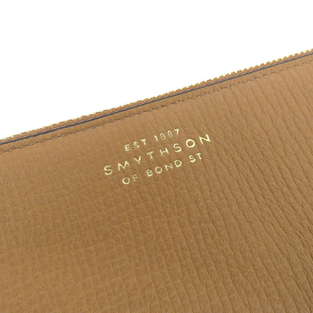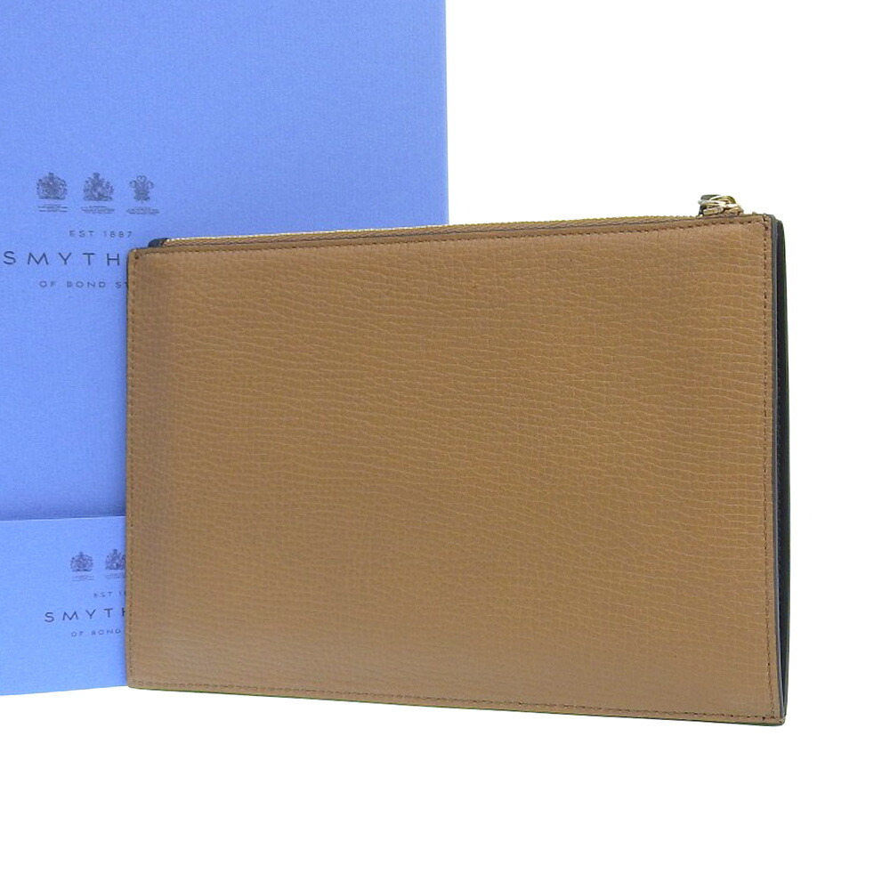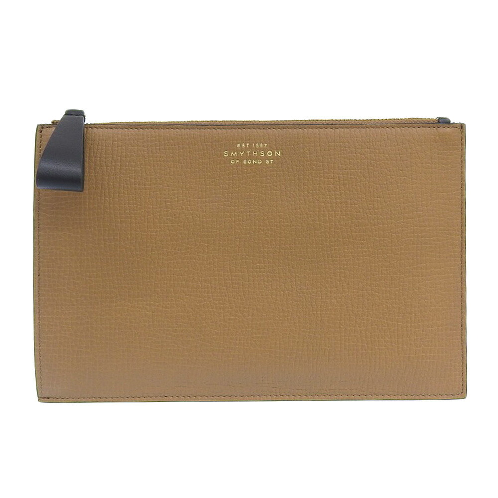 | 未使用 箱付 スマイソン SMYTHSON 現行ロゴ レザー クラッチ セカンド バッグ ビジネス ポーチ ブラウン レザープル付 メンズ レディース |