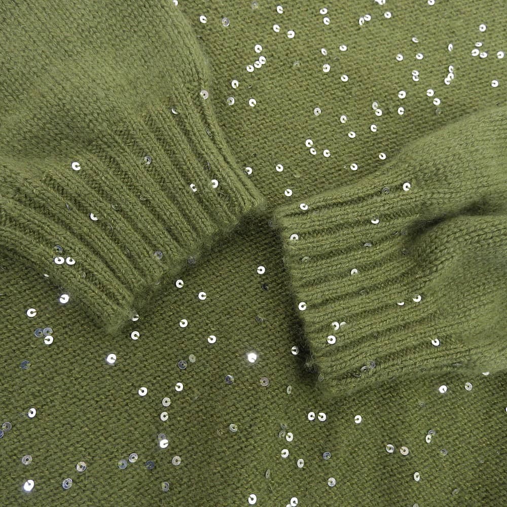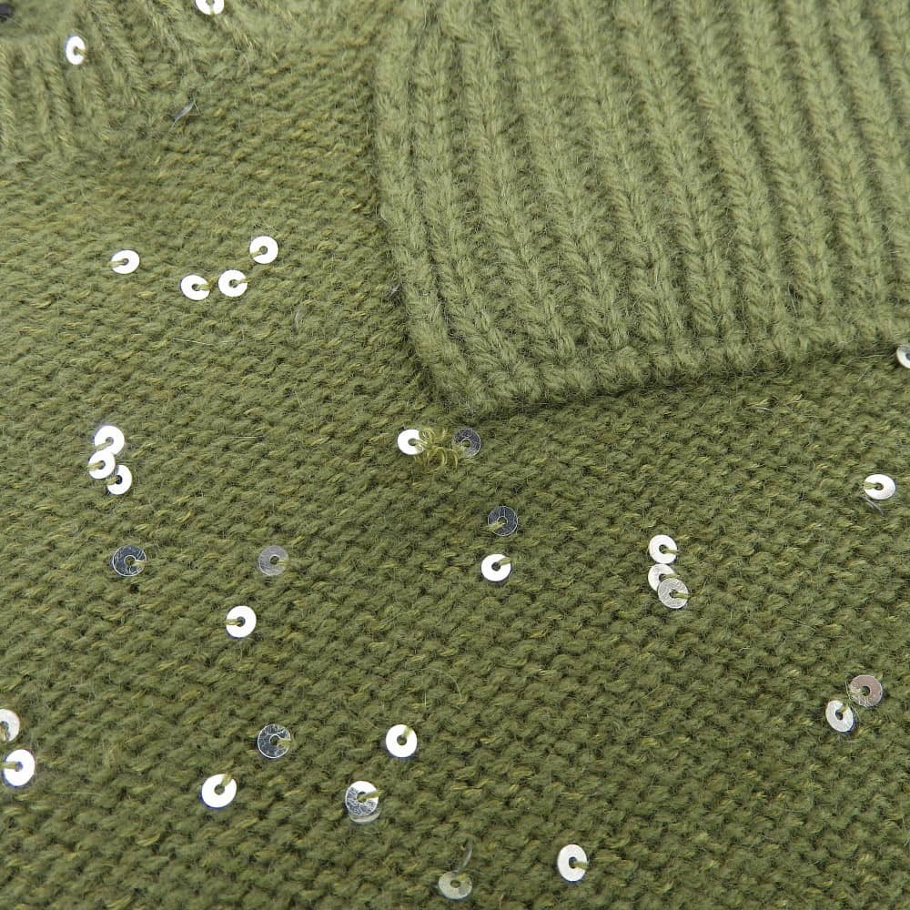 スパンコールを施した上品で華やかなデザインが魅力的なニットが入荷しました。クルーネックで首元をすっきりとした印象に魅せます。シンプルながらもおしゃれなお品物です。 |