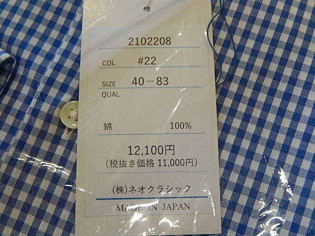 な)  新品 未使用品 長袖 ワイシャツ  ビジネスシャツ 40-83 メンズ 日本製 綿100%