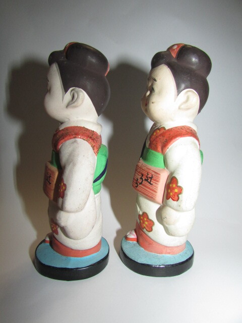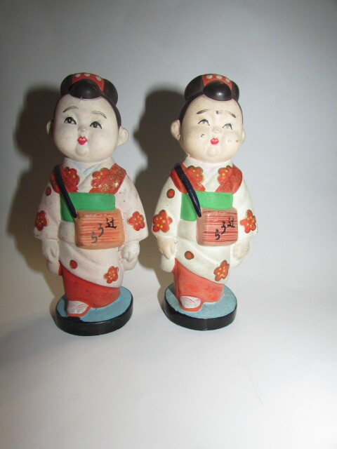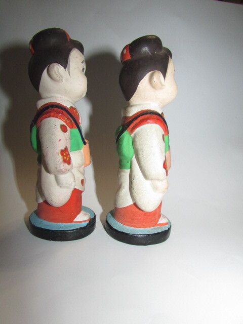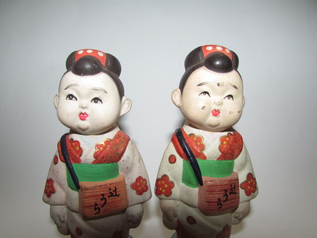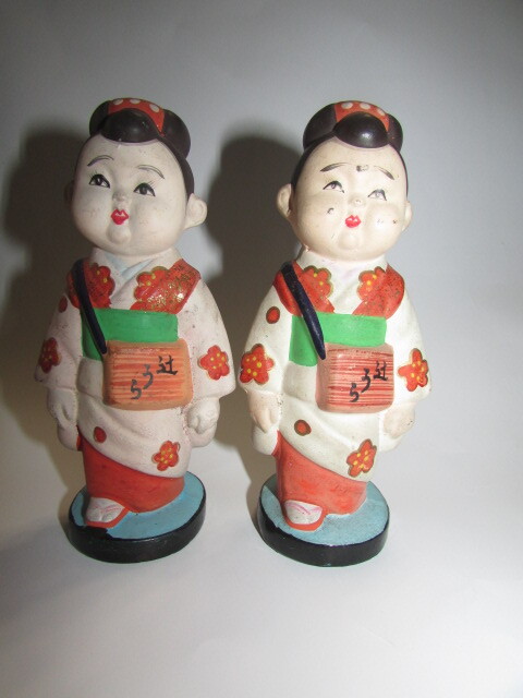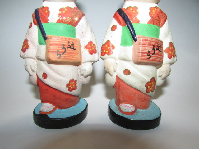 ( 会津若松・旧家・蔵出し)明治時代―大正時代か( 古い時代の土人形・辻ろう・着物を着た可愛い女の子姉妹の人形 )・貴重・珍品